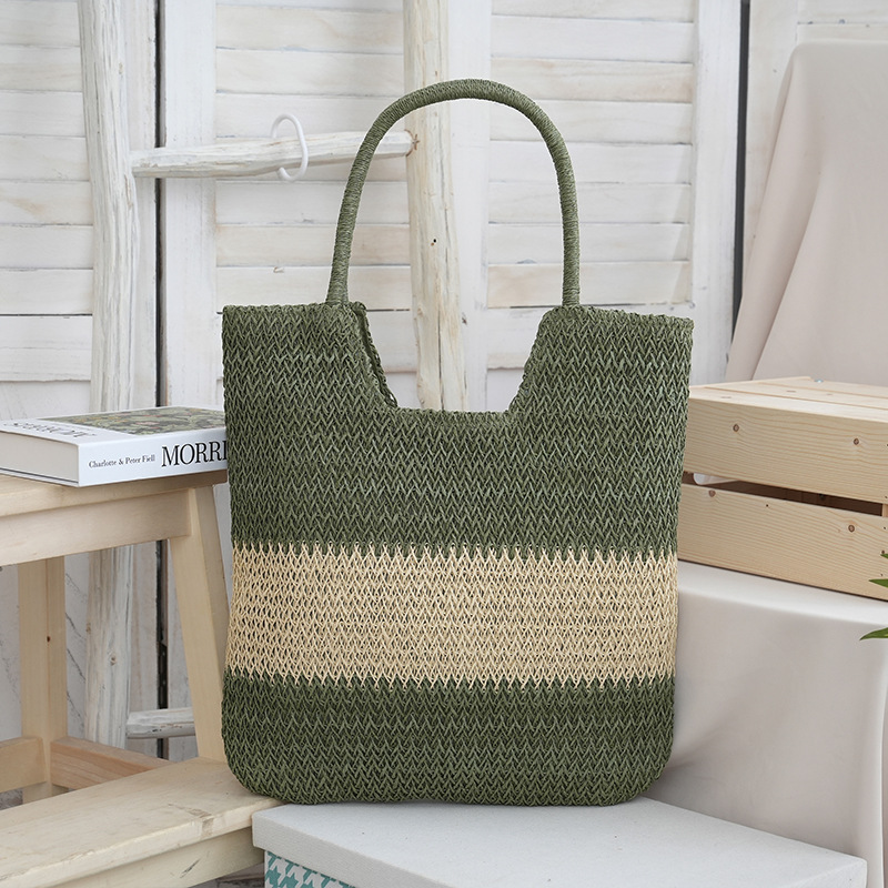 2025 새로운 밀짚 짠 가방 여성 가방 대용량 봄 캐주얼 어깨 휴대용 틈새 디자인 토트 백스토어 가기