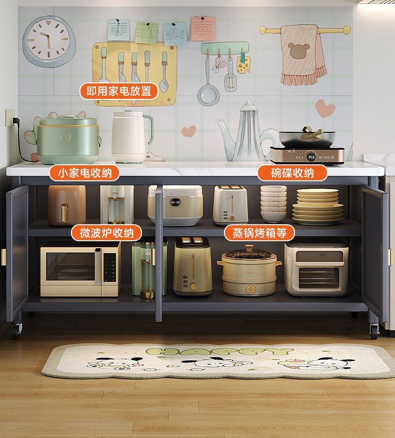 양문형 슬레이트 주방 수납 선반, 바닥에서 천장까지 이어지는 다층 수납 캐비닛, 다기능 전자레인지, 야채 컷팅 찬장