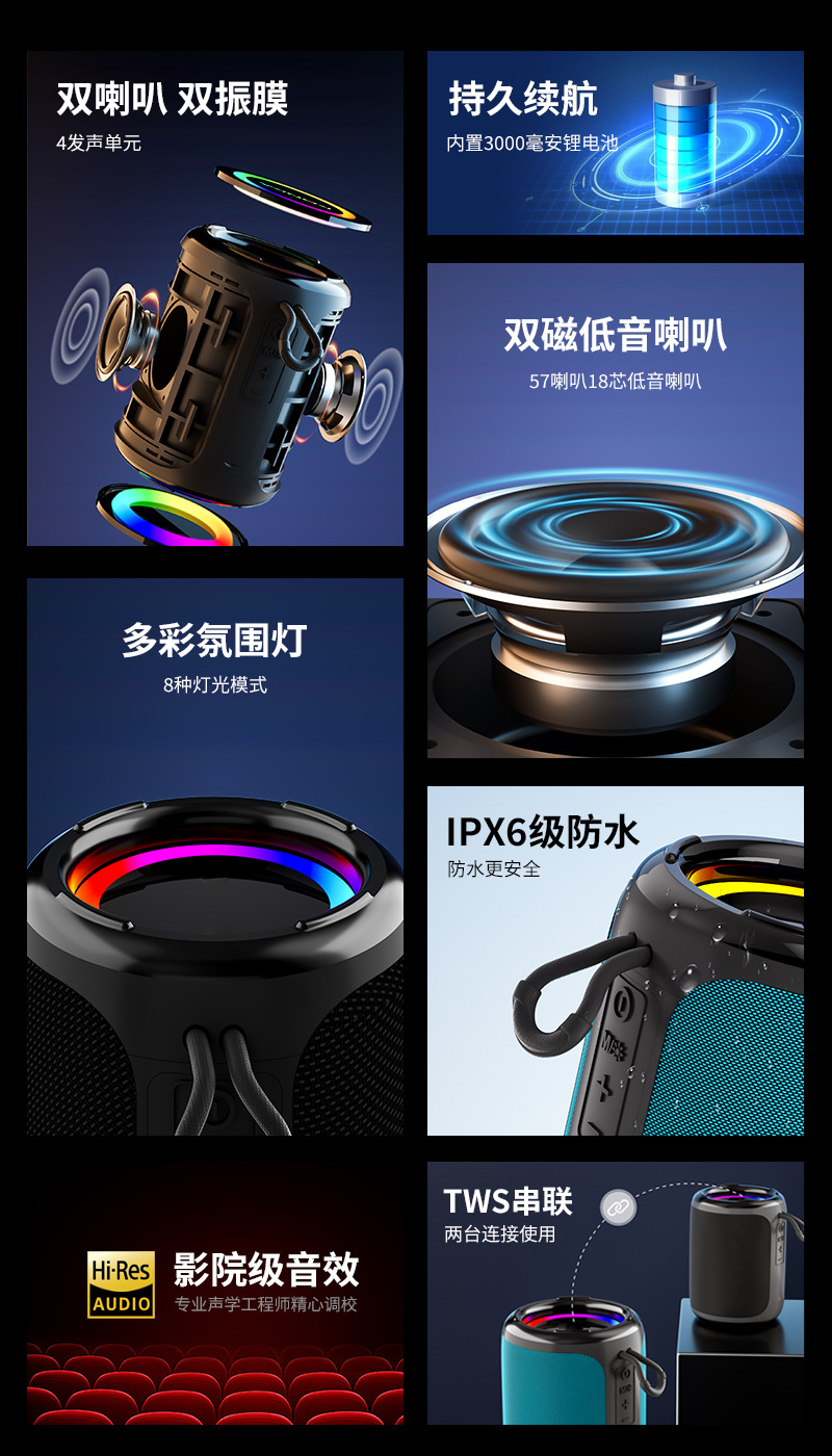 국경 간 서브 우퍼 무선 오디오 야외 컴퓨터 자동차 블루투스 스피커 듀얼 스피커 서라운드 초대형 오디오