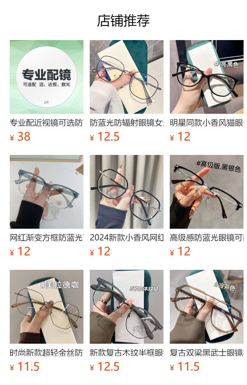 Xiaoxiangfeng 여성용 블루라이트 방지 안경, 일반 메이크업, 대형 프레임, 슬리밍, 근시 안경과 매치 가능, Xiaohongshu, 초경량 및 패셔너블스토어 가기