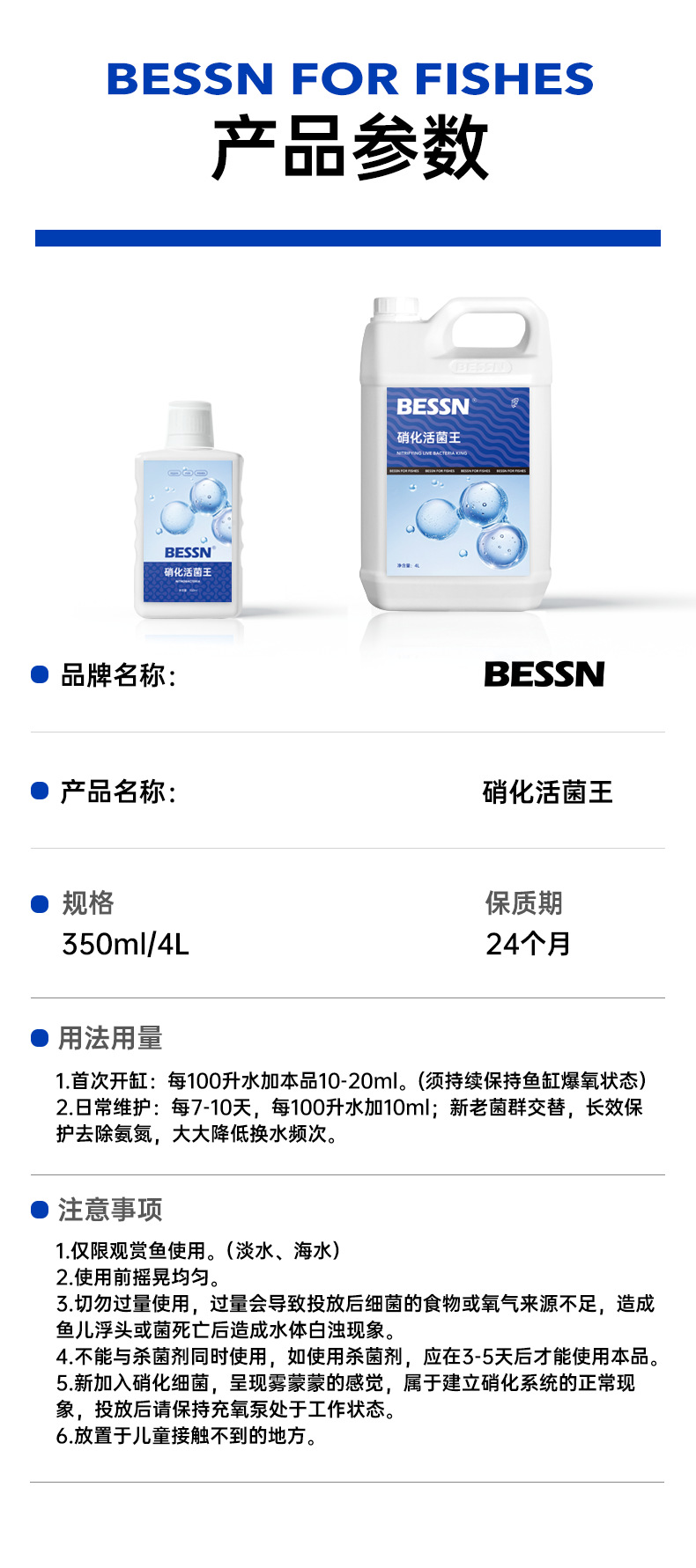 BESSN 질산화 박테리아 수조 정수기 수질 안정제 담수 및 해수 범용 분해 물고기 분뇨 양식 용품