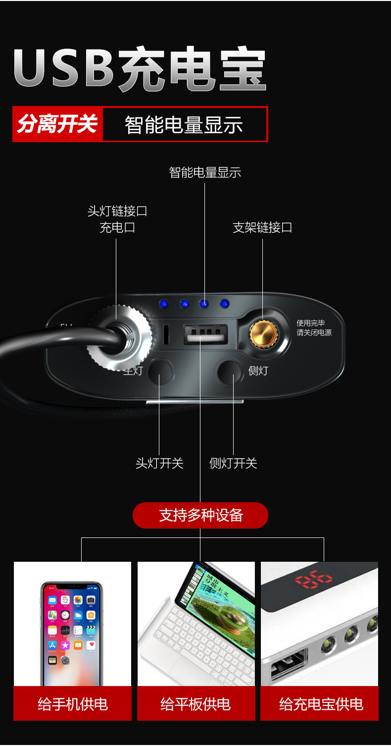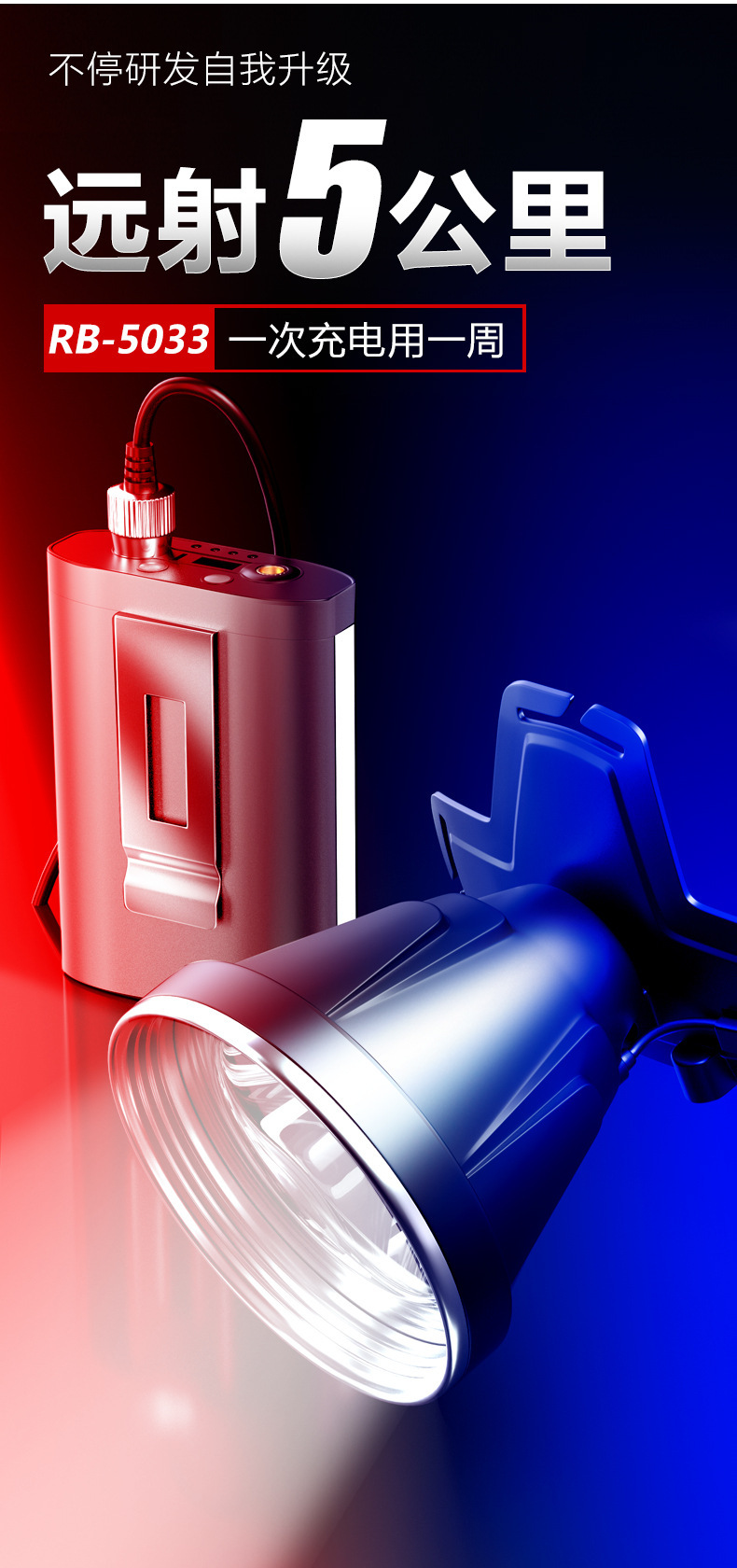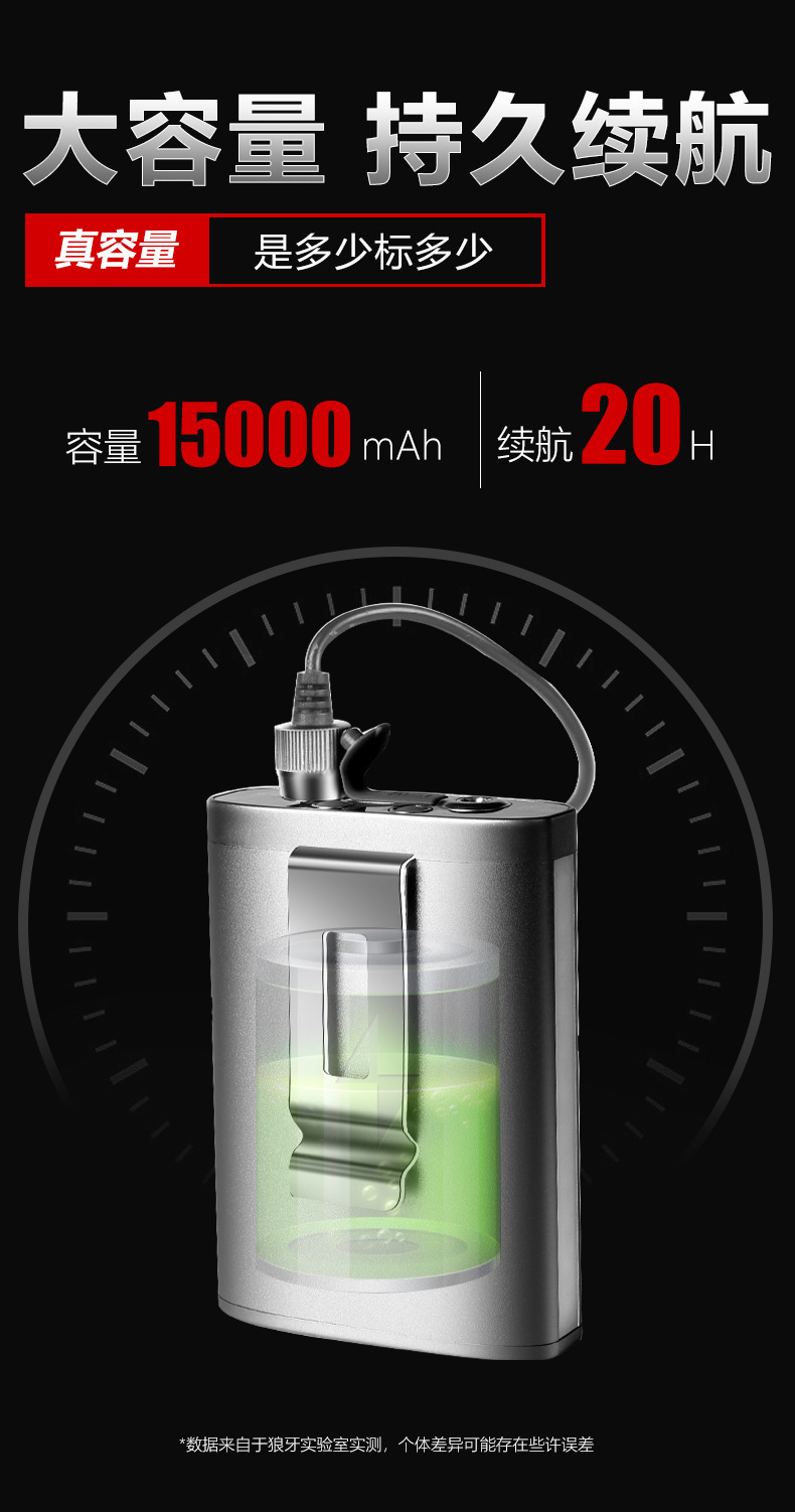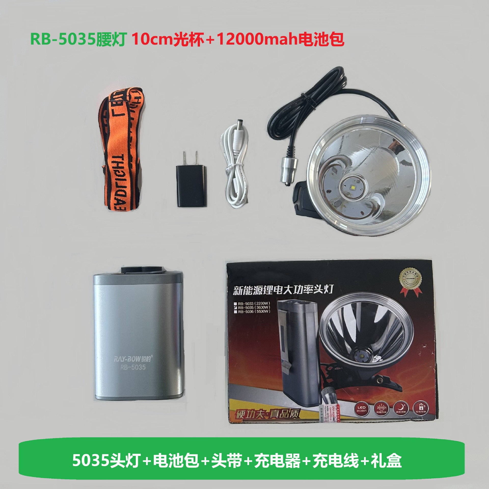 • RB-5035 새로운 허리 램프 백색광 + 12000mah 배터리 팩 + 10cm 라이트 컵 (업그레이드 모델)