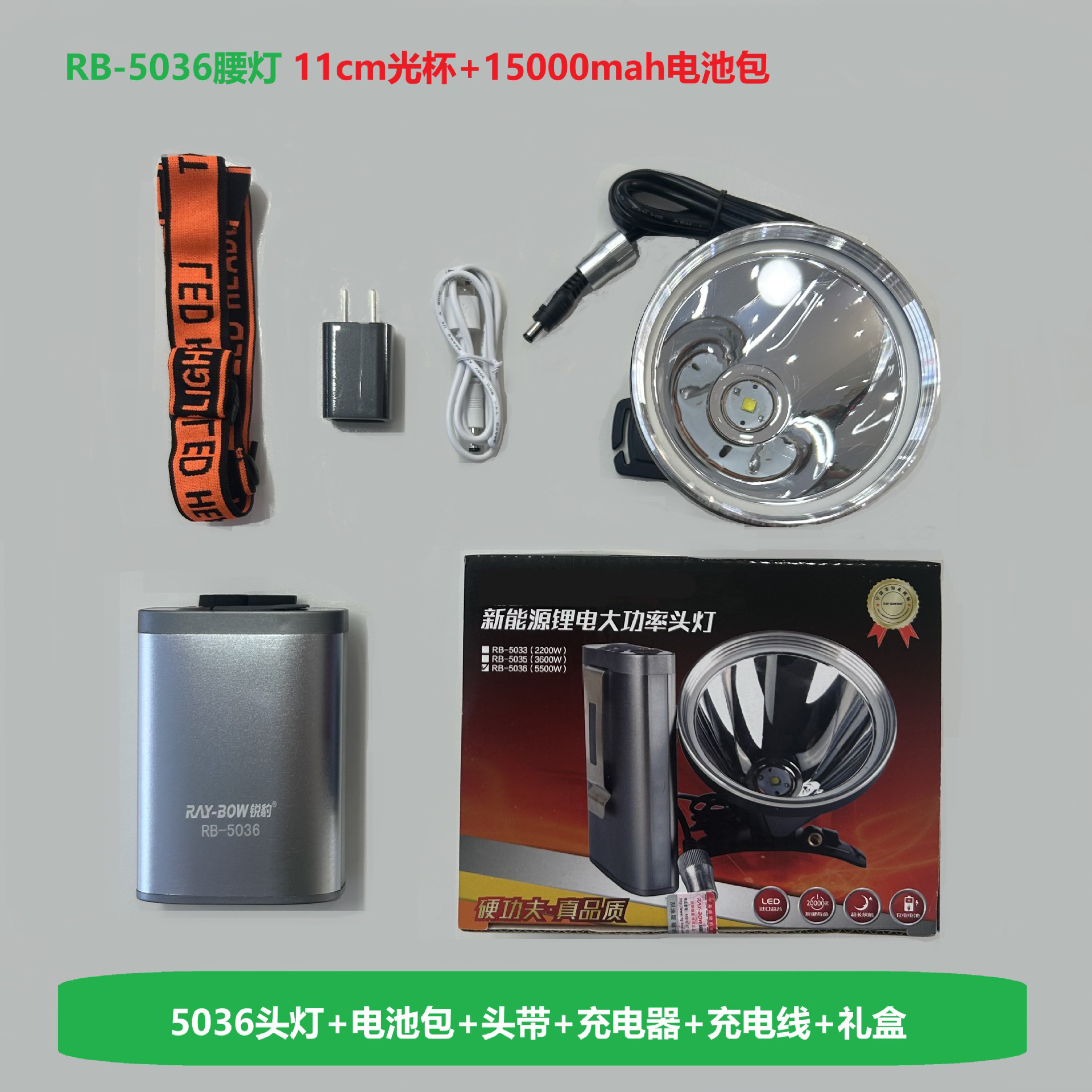 • RB-5036 신형 허리등 백색광 + 15000mah 배터리 팩 + 11cm 라이트 컵(플래그십 모델)