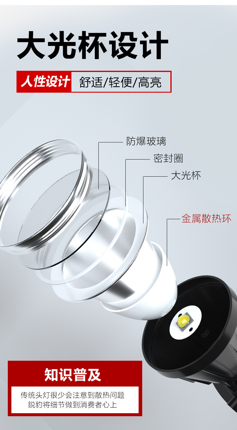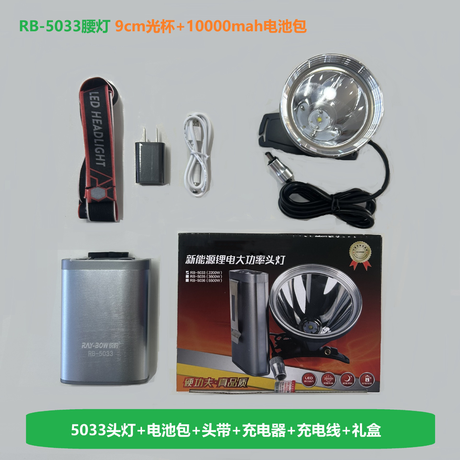 • RB-5033 새로운 허리 램프 백색광 + 10000mah 배터리 팩 + 9cm 라이트 컵(비용 효율적인 선택)