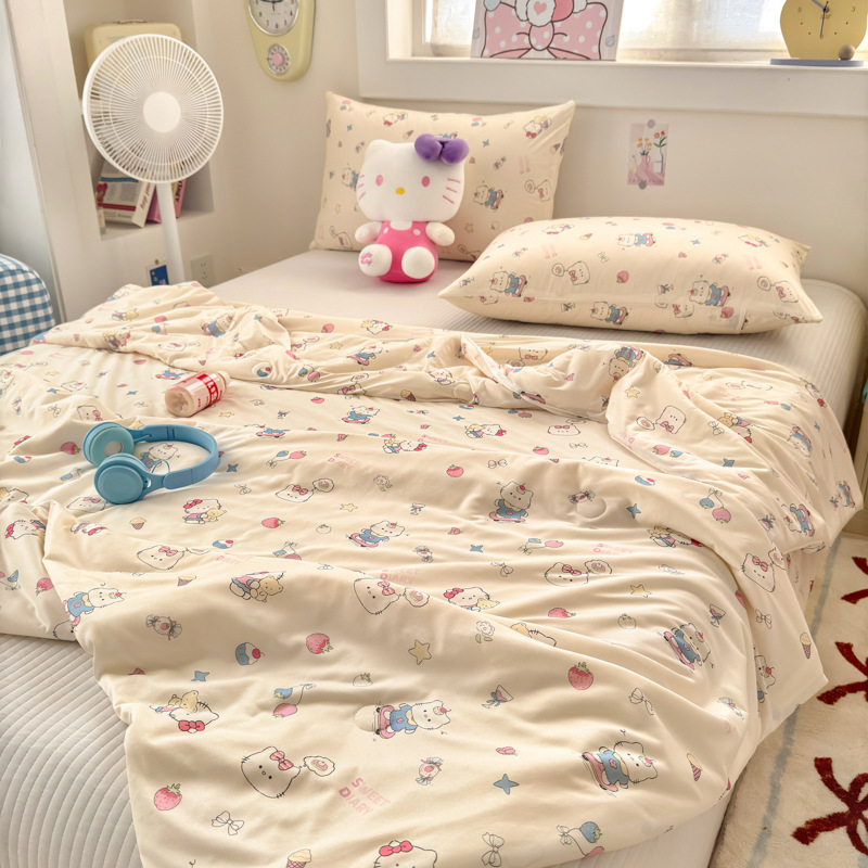 클래스 A 니트 코튼 콩 섬유 여름 쿨 퀼트 학생 기숙사 만화 신선한 에어컨 퀼트 세척 가능한 얇은 이불