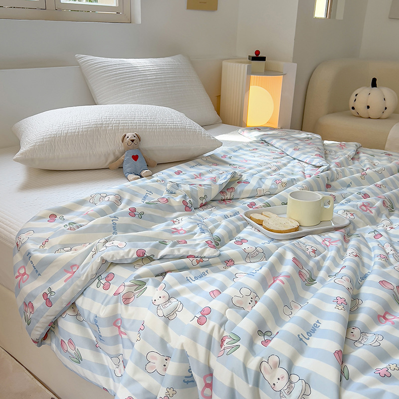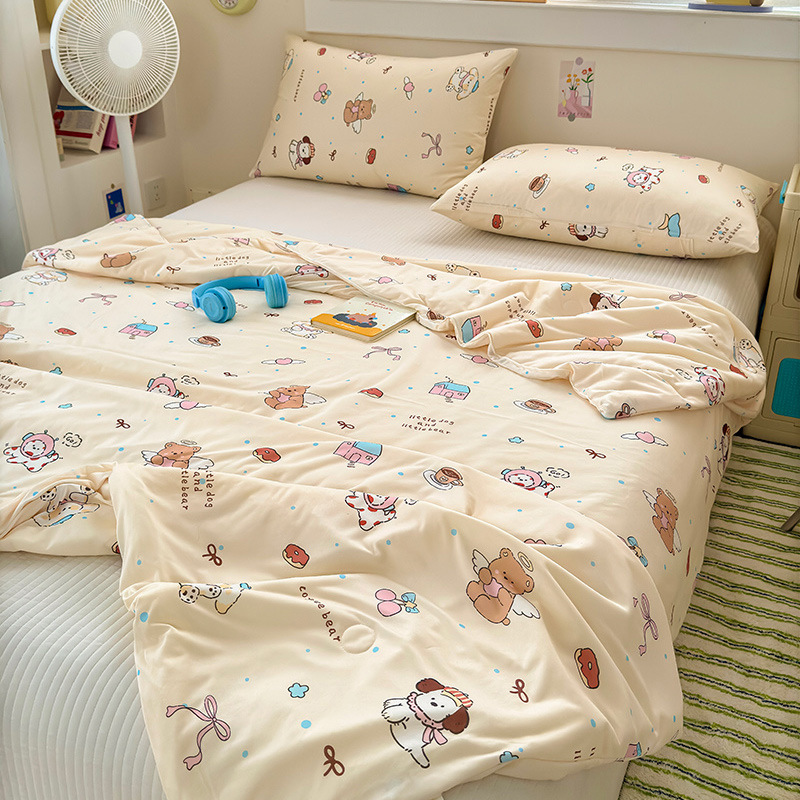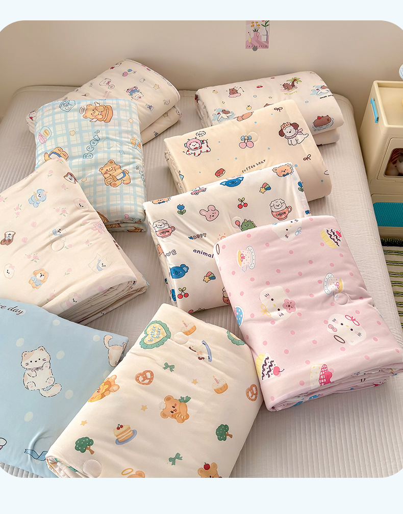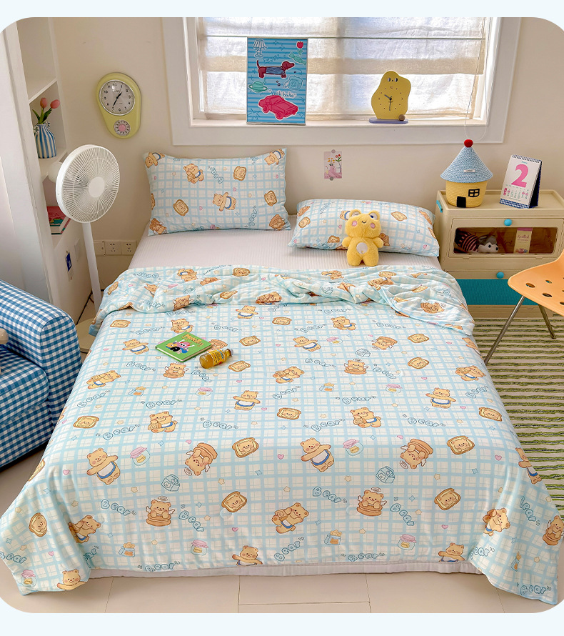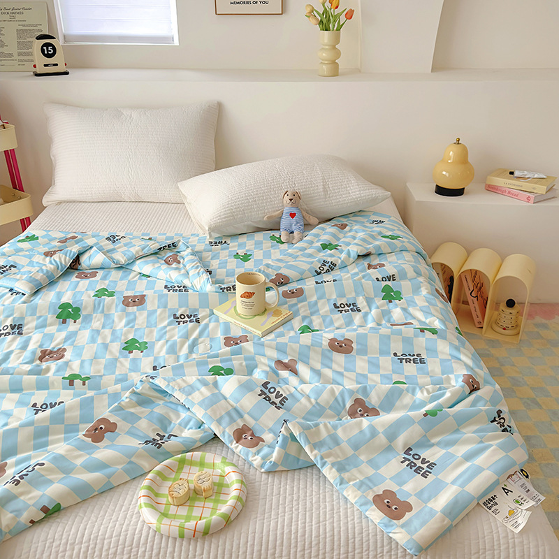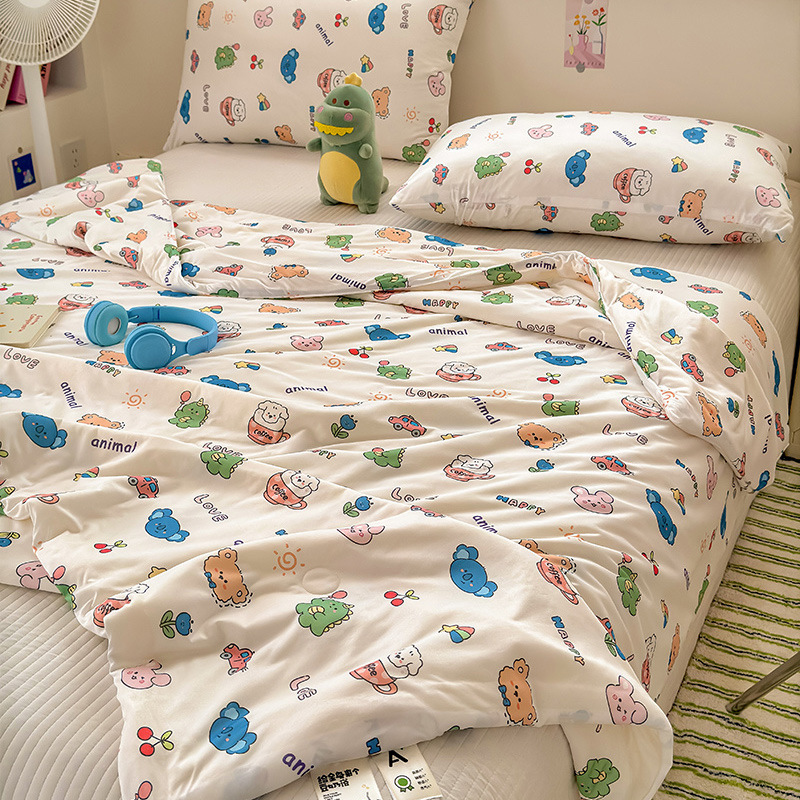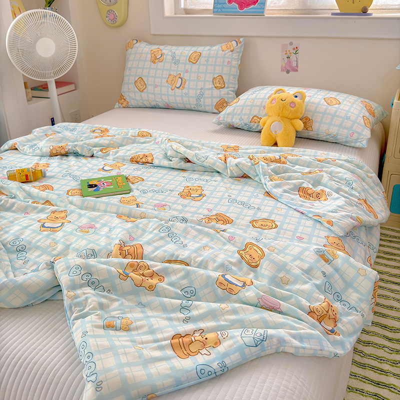 클래스 A 니트 코튼 콩 섬유 여름 쿨 퀼트 학생 기숙사 만화 신선한 에어컨 퀼트 세척 가능한 얇은 이불스토어 가기
