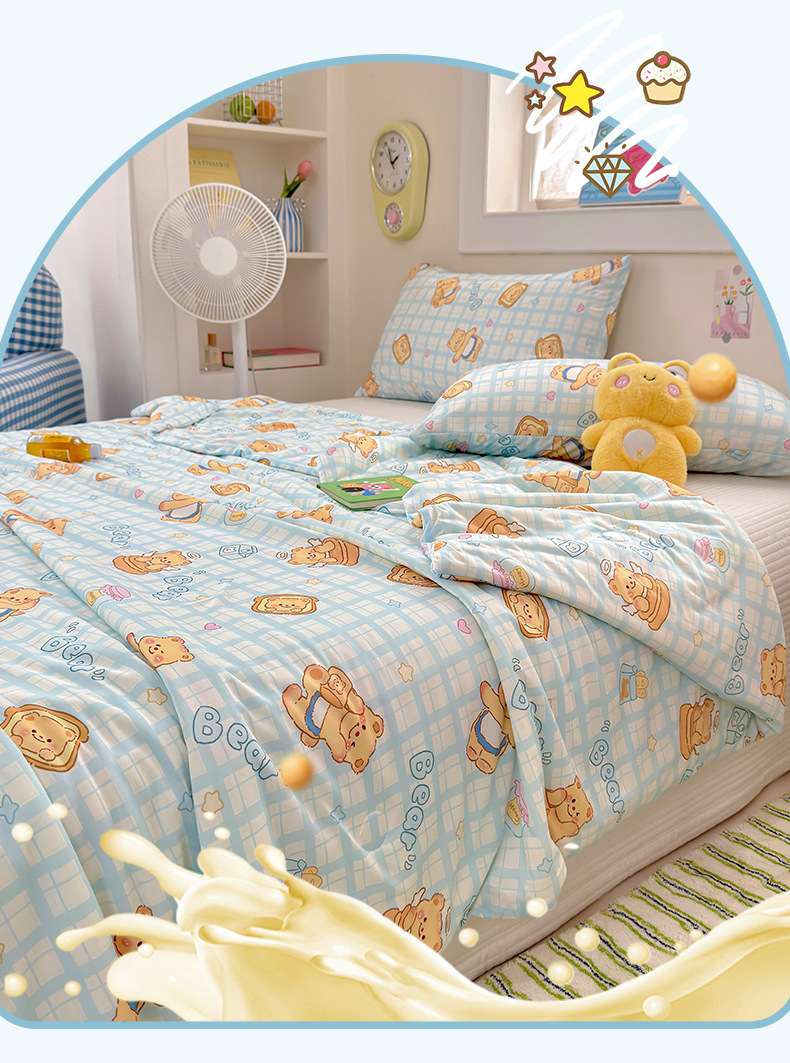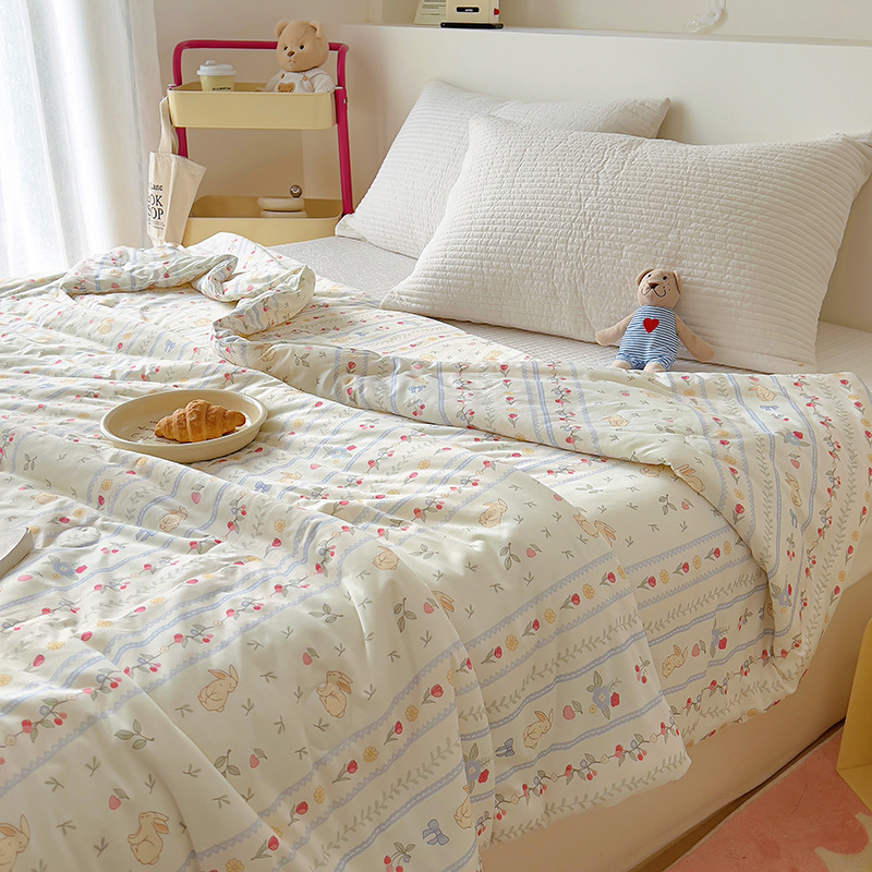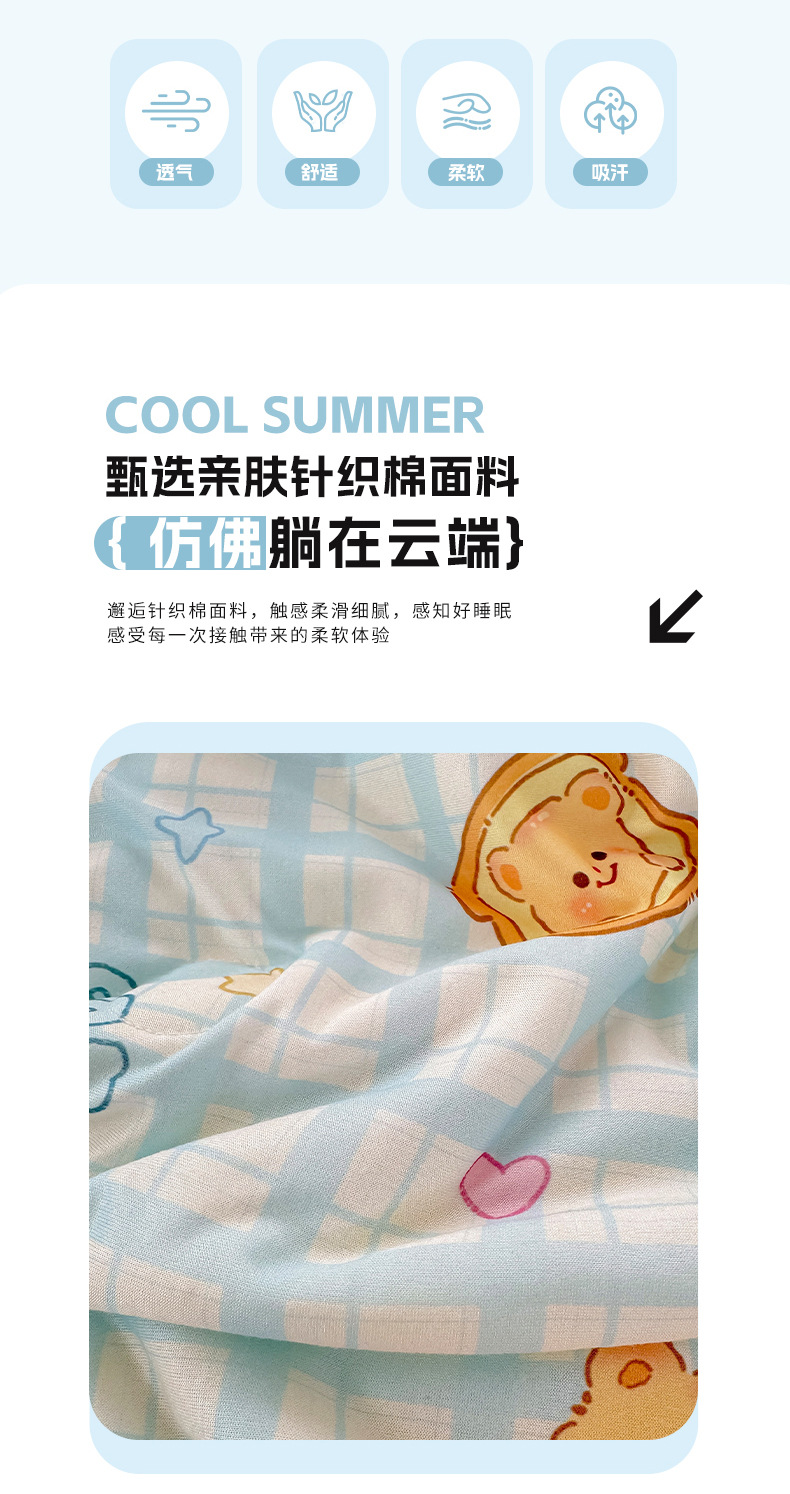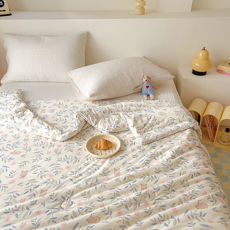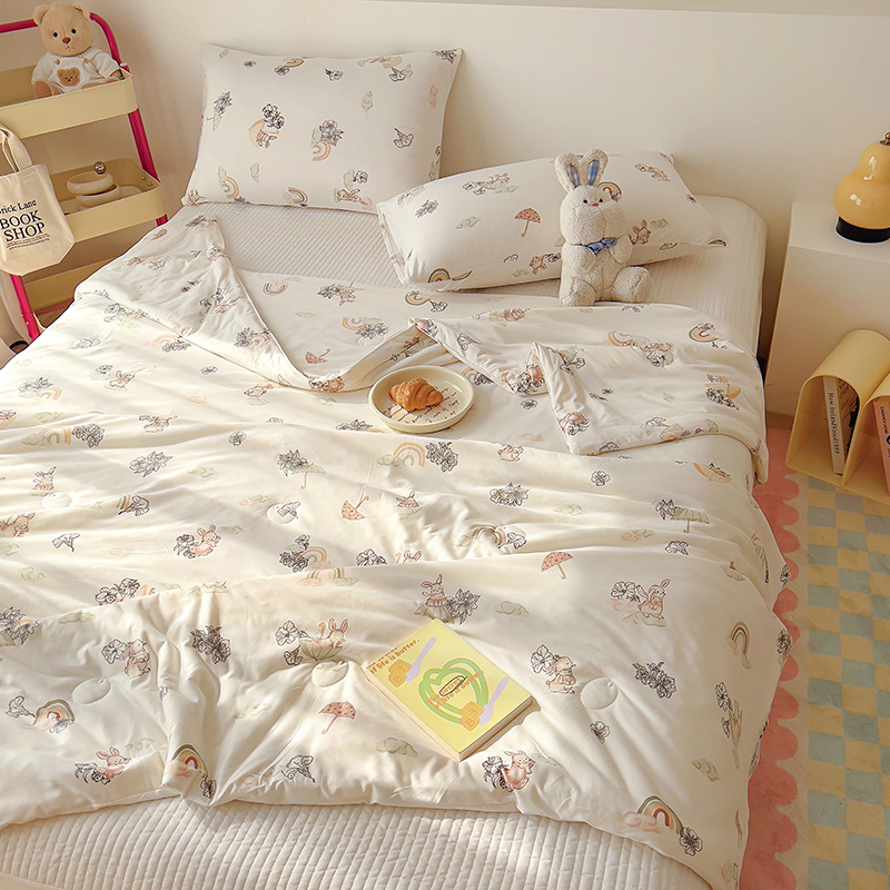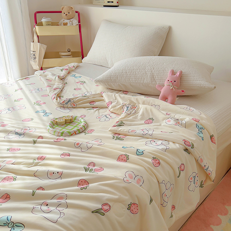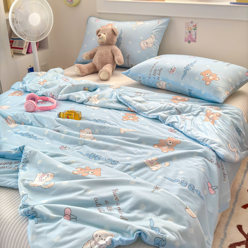 클래스 A 니트 코튼 콩 섬유 여름 쿨 퀼트 학생 기숙사 만화 신선한 에어컨 퀼트 세척 가능한 얇은 이불스토어 가기