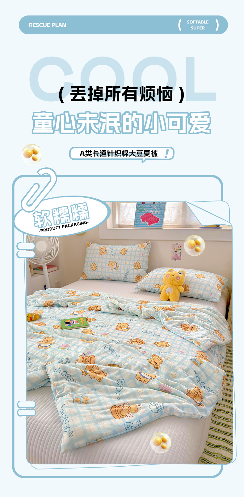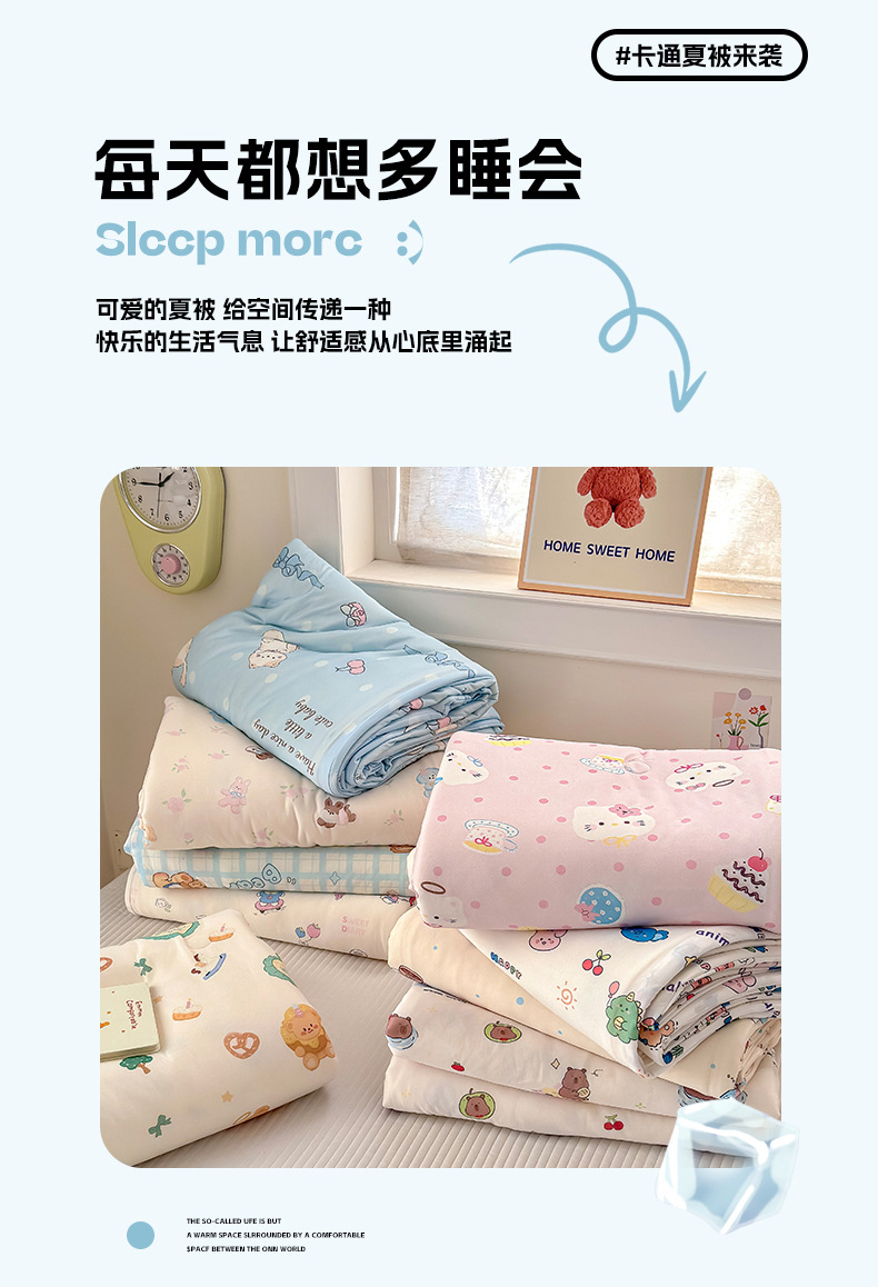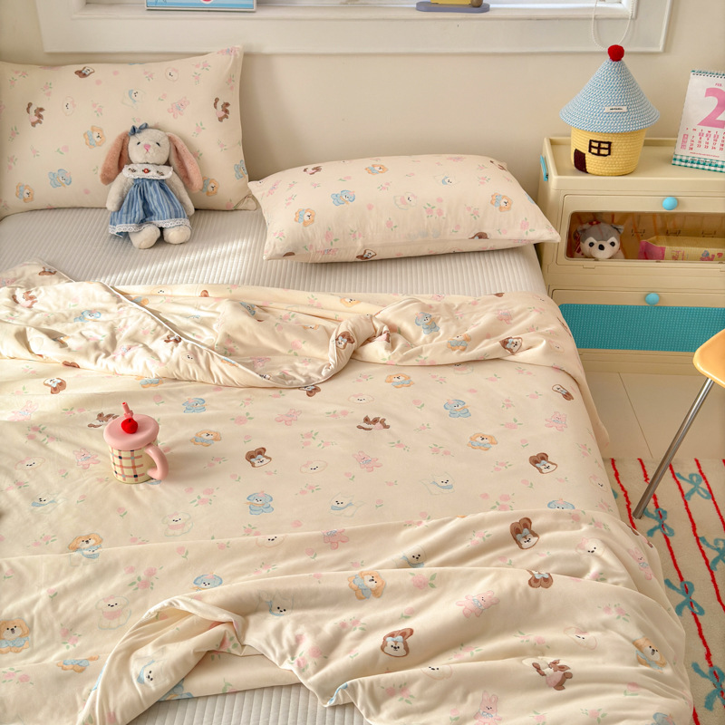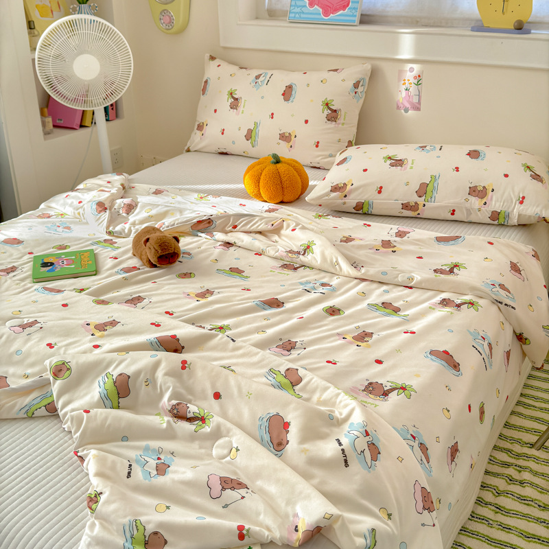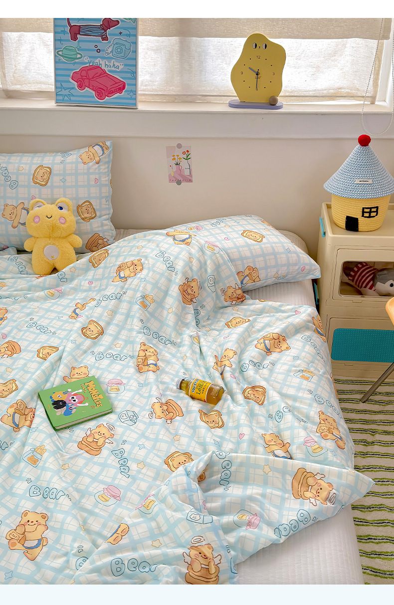 클래스 A 니트 코튼 콩 섬유 여름 쿨 퀼트 학생 기숙사 만화 신선한 에어컨 퀼트 세척 가능한 얇은 이불스토어 가기