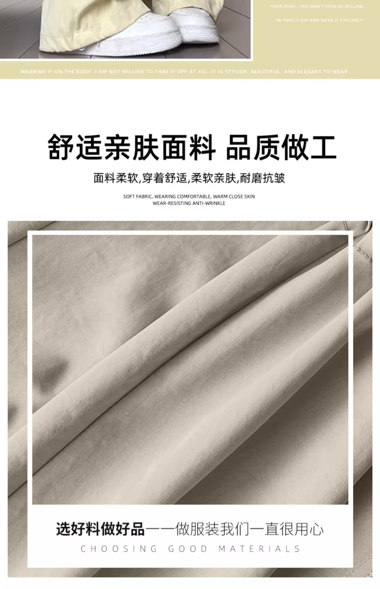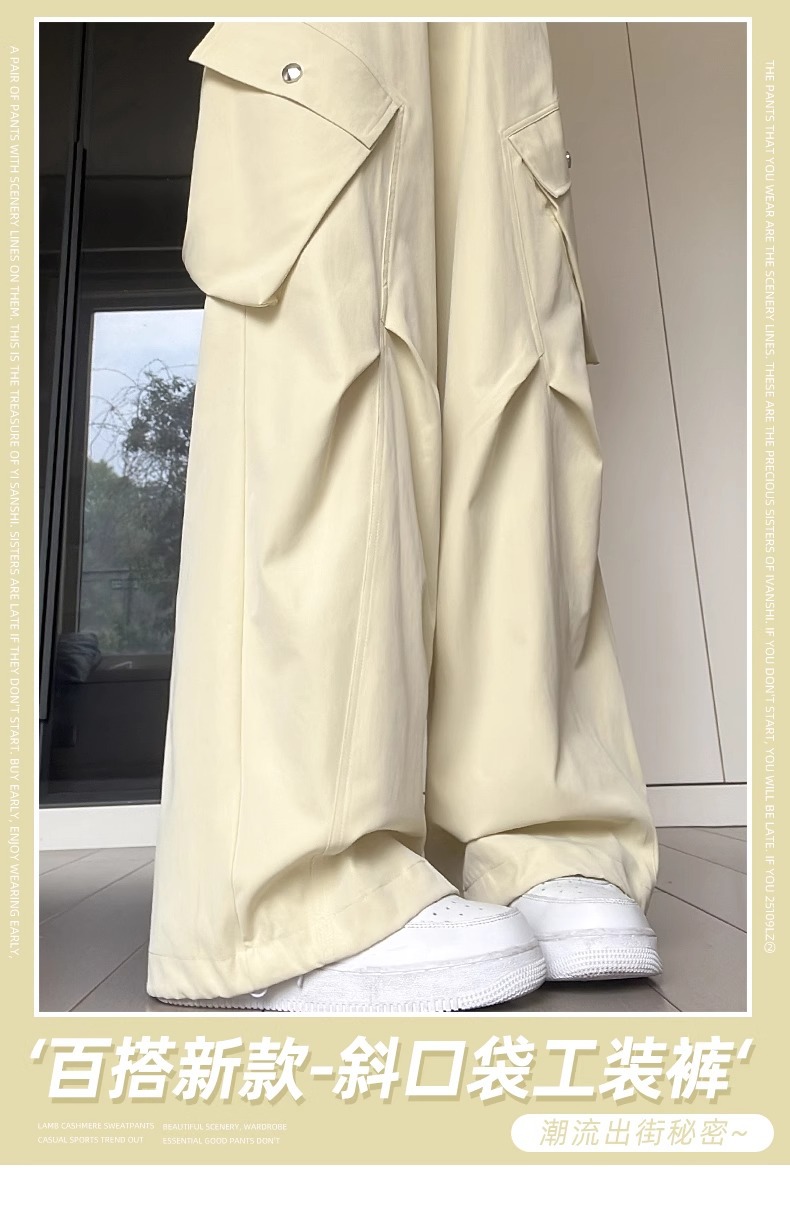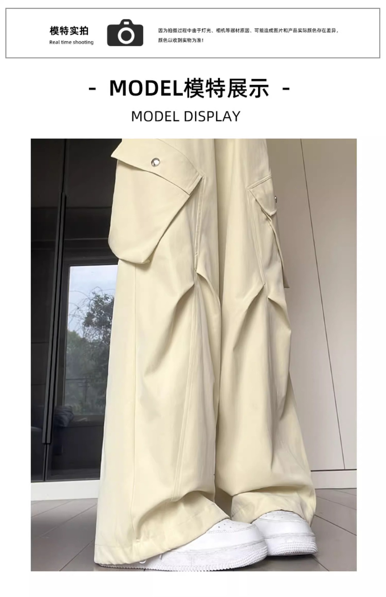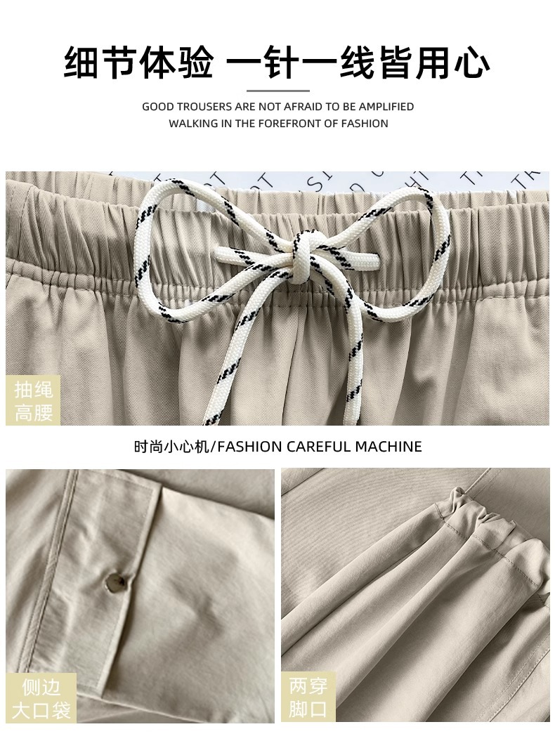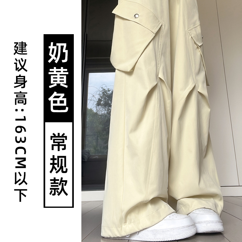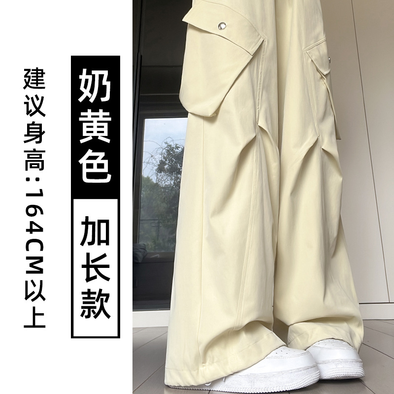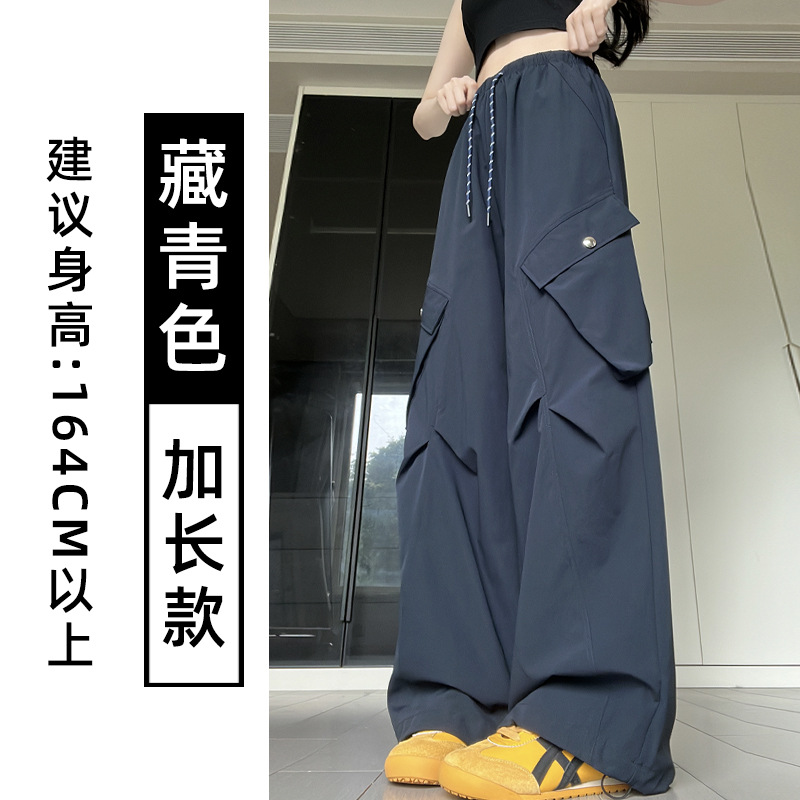 미국 스타일의 대형 포켓 크레인 바지 여성 여름 2025 새로운 높은 허리 슬리밍 휴식 빠른 건조 스포츠 와이드 다리 바지
