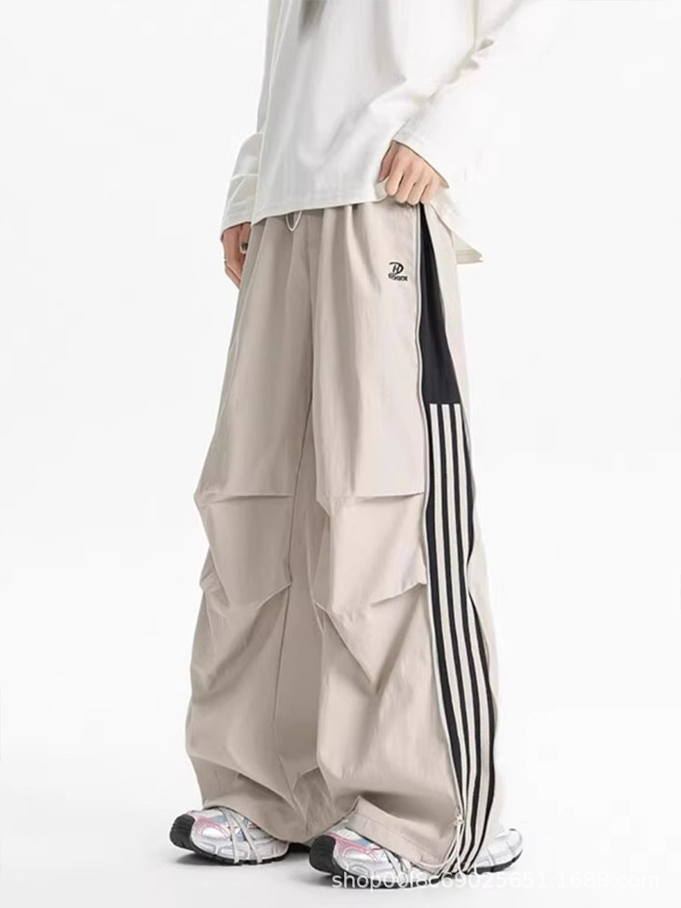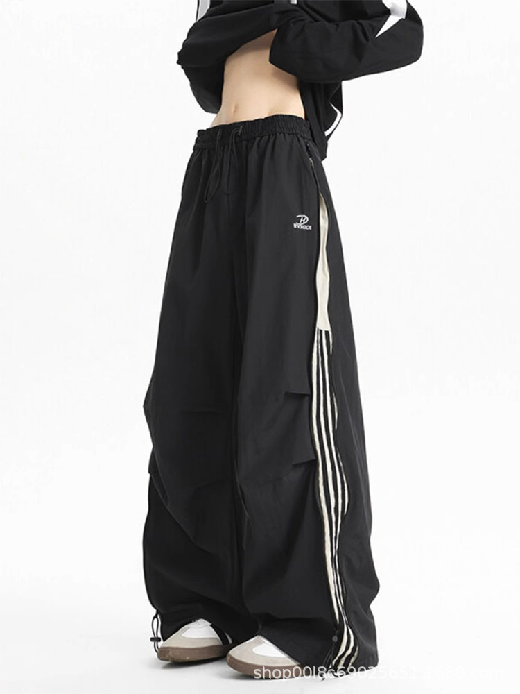 미국식 빠른 건조 충전 바지 여자 여름 스트레이트 느슨한 마체테 바지 올 매치 지퍼 사이드 스트라이프 낙하산 툴링 바지스토어 가기