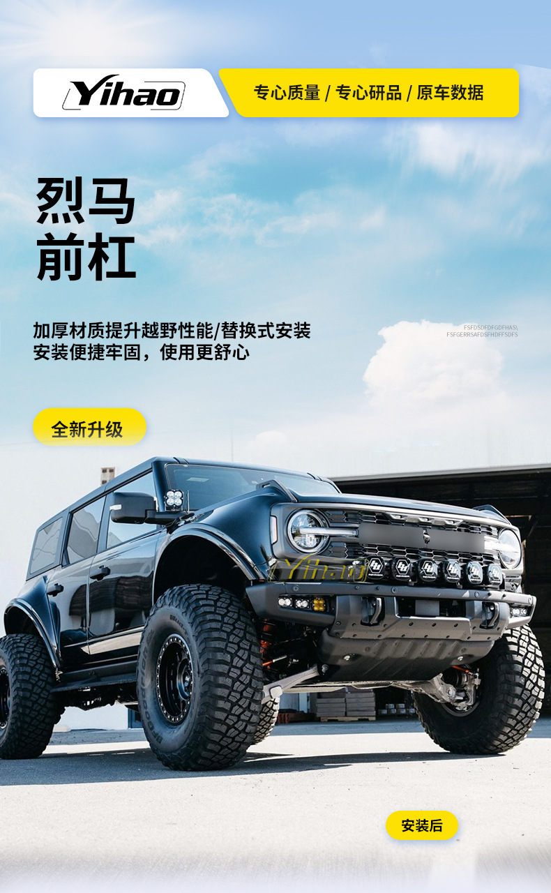 포드 브롱코 오프로드 버전 프론트 바, 포드 브롱코 개조용 충돌 방지 바(윈치 트레이 포함)스토어 가기