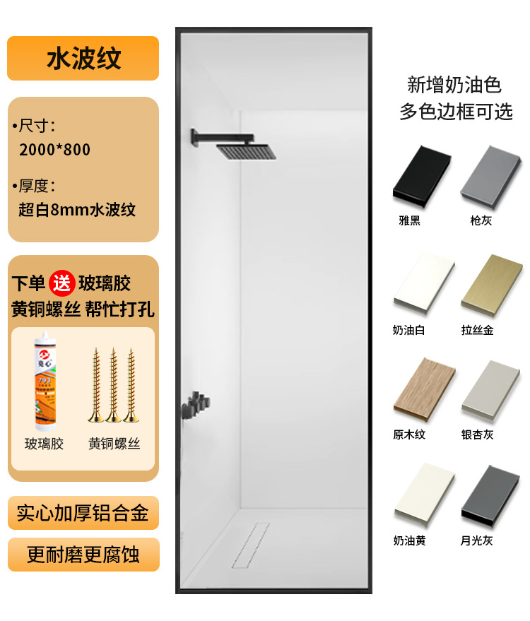 • 2000*700 8mm 슈퍼 화이트 투명 강화 + 16*35 티타늄 마그네슘 합금 프레임