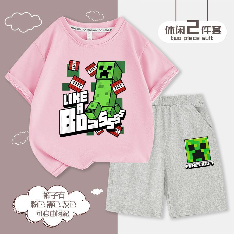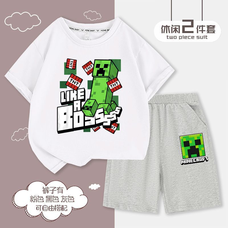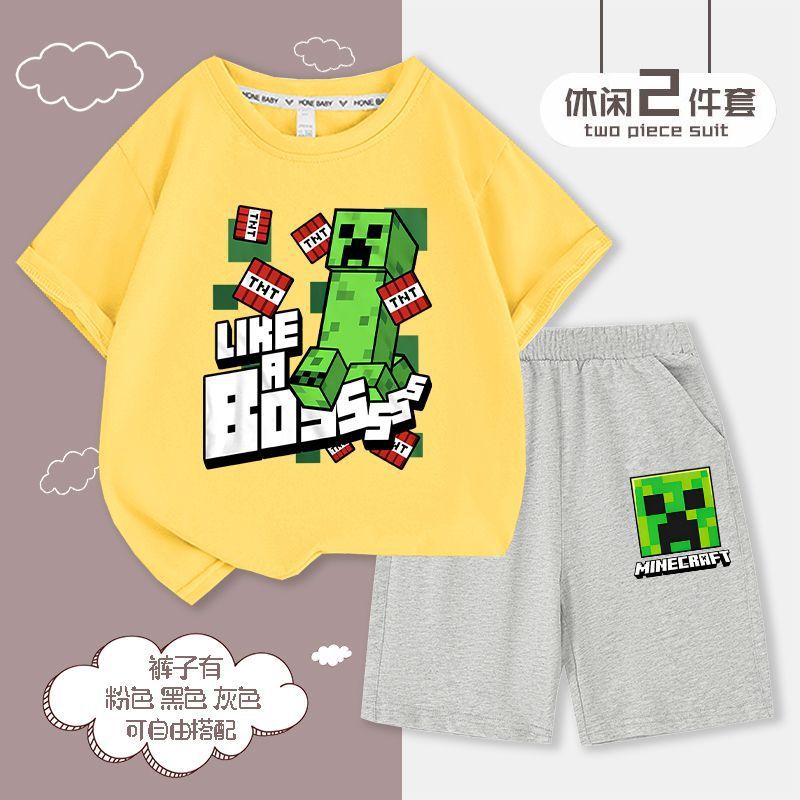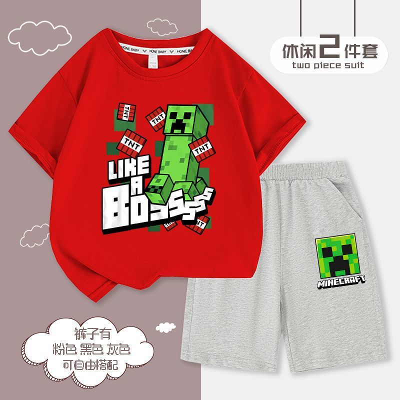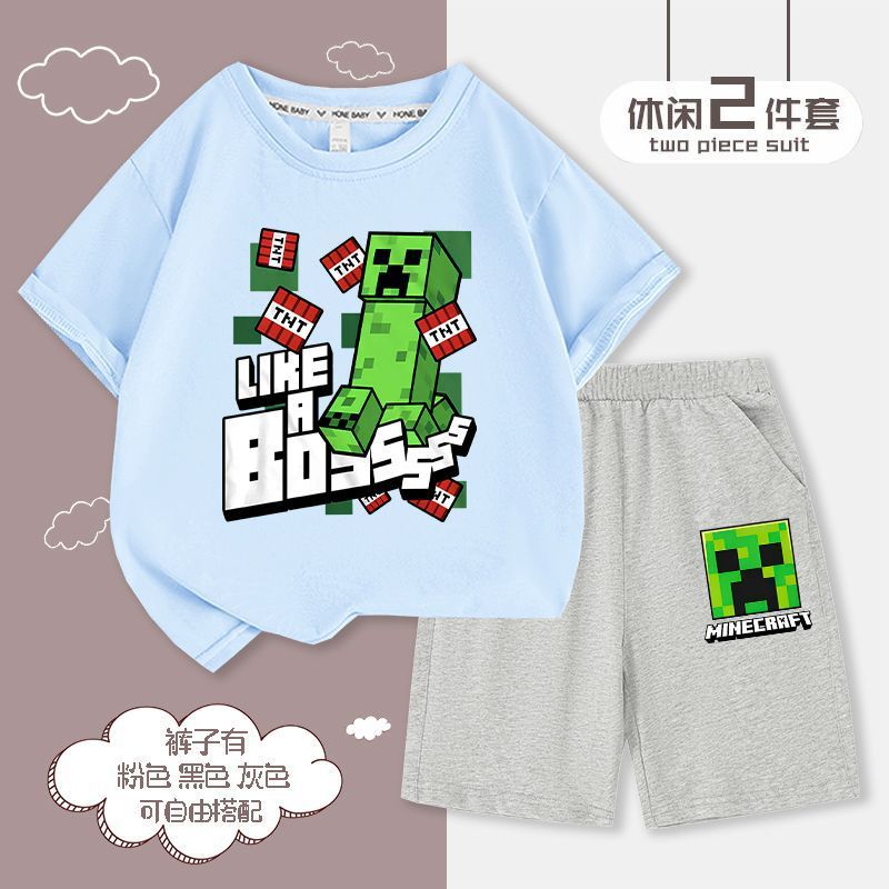 Minecraft 아동복 소년 여름 정장 큰 어린이 소년 얇은 반팔 여름 시원하고 잘 생기고 세련된스토어 가기
