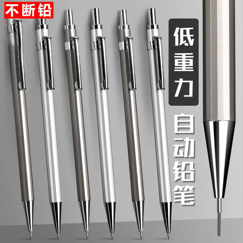 새로운 완전 자동 금속 연필 금속 막대 연속 코어 낮은 중점 0.5/0.7mm 쓰기 자동 연필