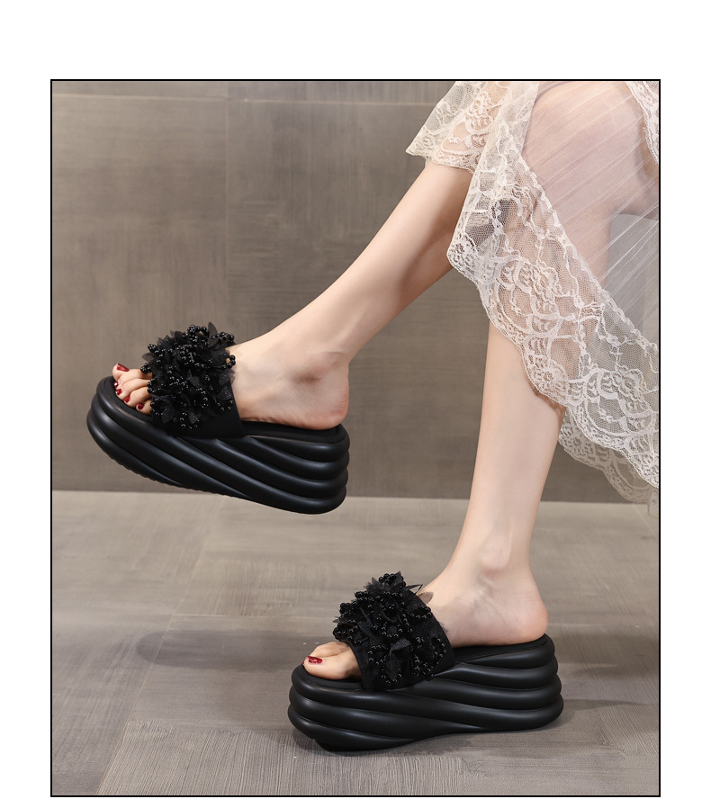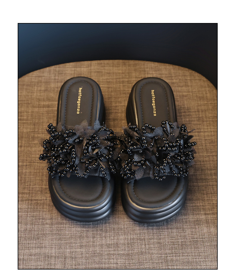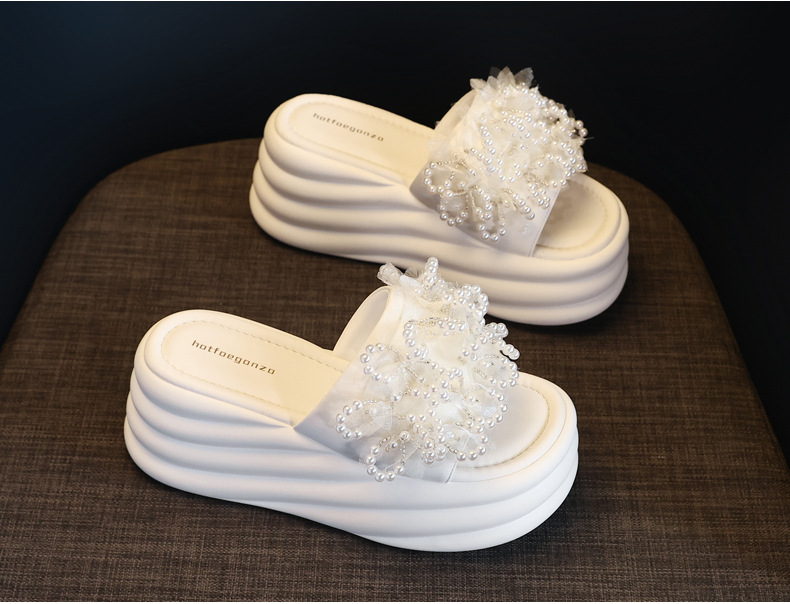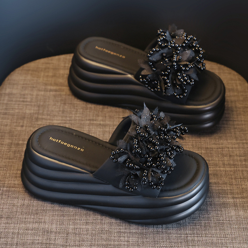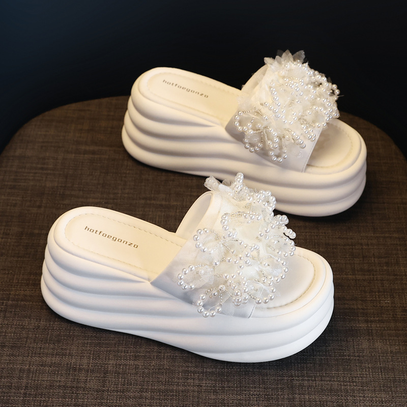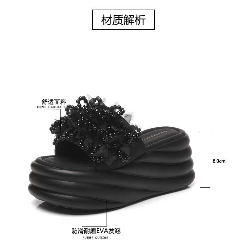 HS58-1 작은 두꺼운 바닥 강화 패션 진주 샌들과 슬리퍼 여성용 2025 여름 슬리퍼스토어 가기