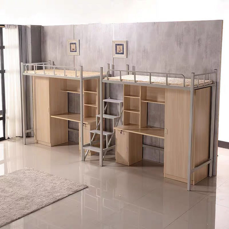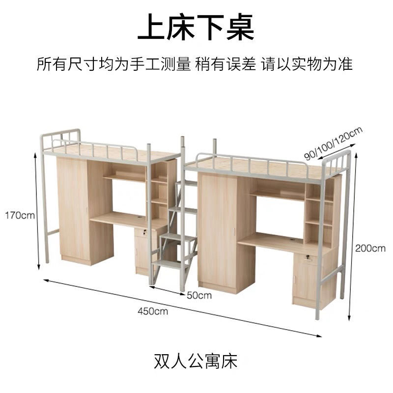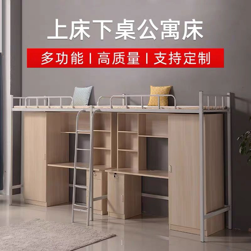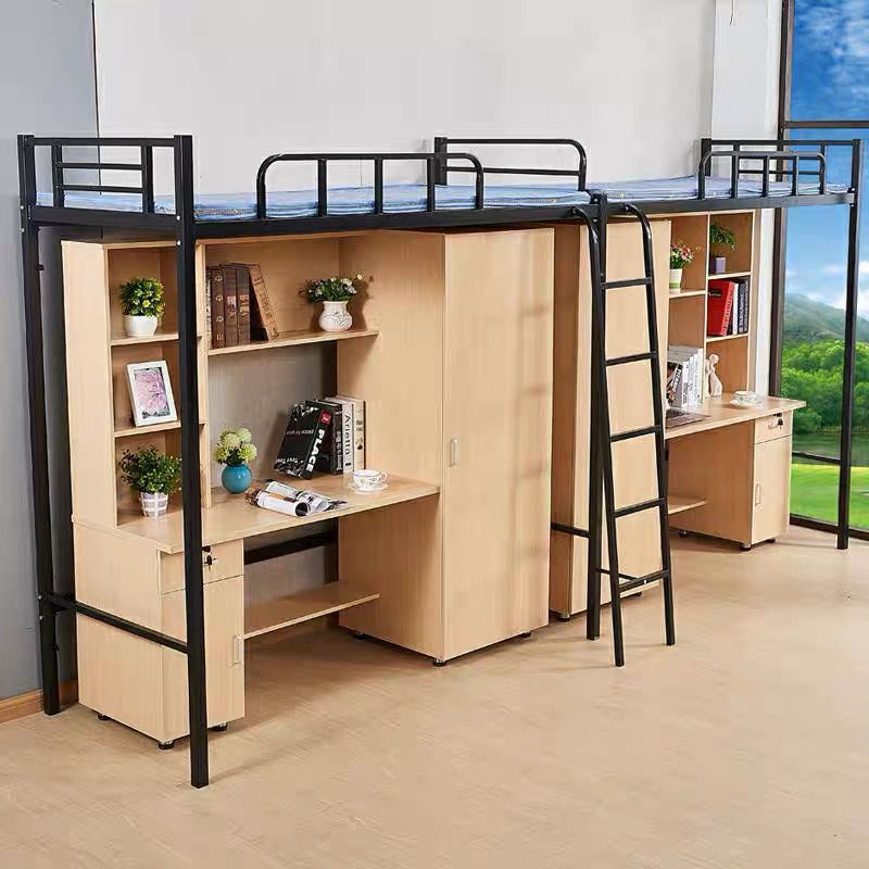 학생침대 일체형 책상 기숙사 상층 대학생 하층 직원 철제 이층침대 하단 옷장 철제 프레임 침대