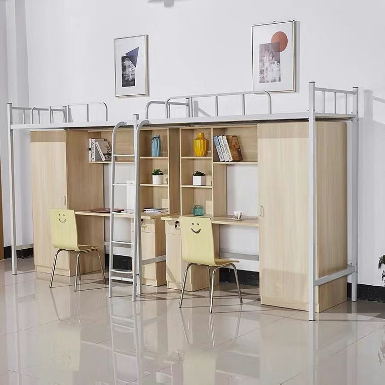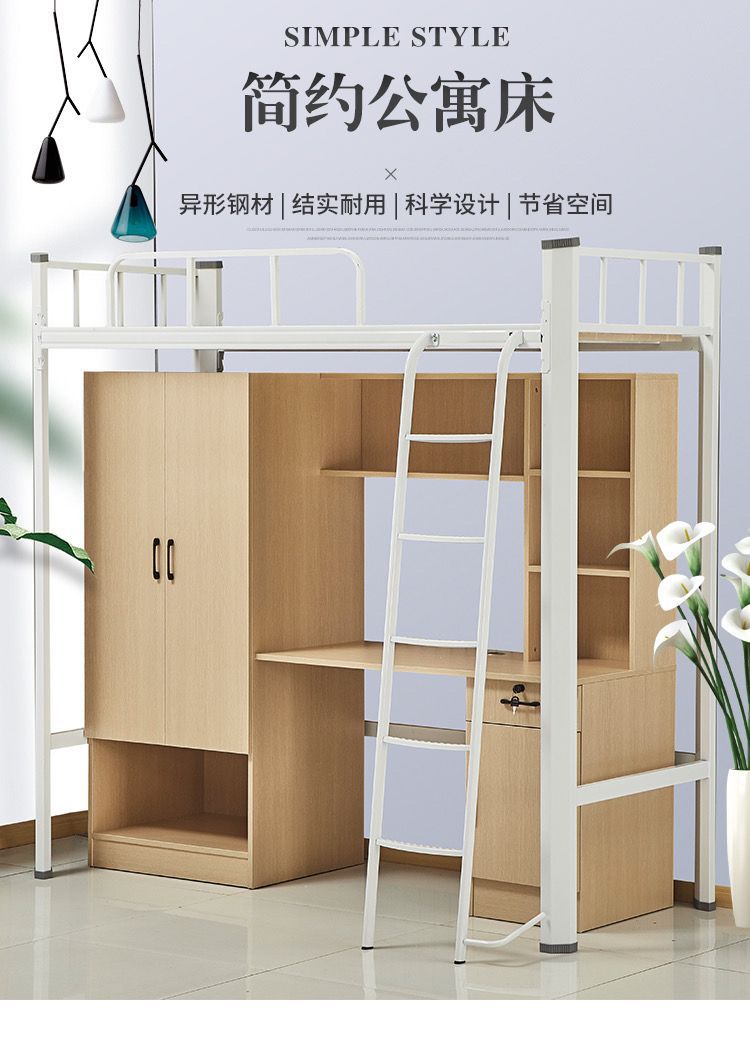 학생침대 일체형 책상 기숙사 상층 대학생 하층 직원 철제 이층침대 하단 옷장 철제 프레임 침대스토어 가기