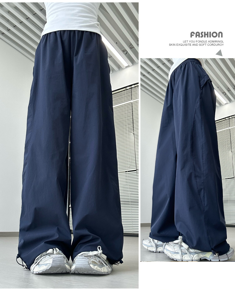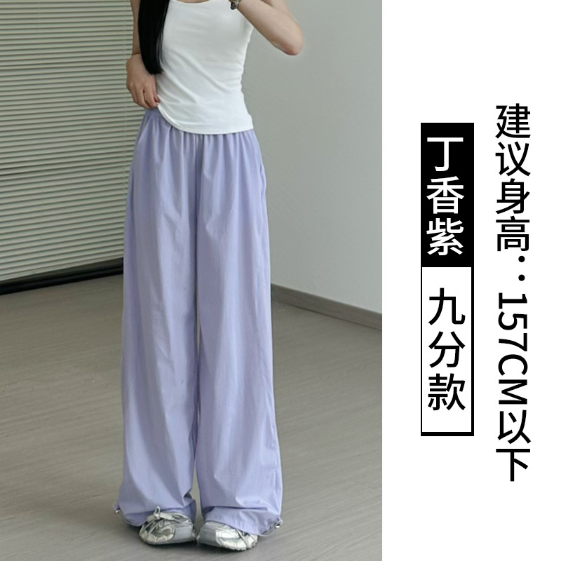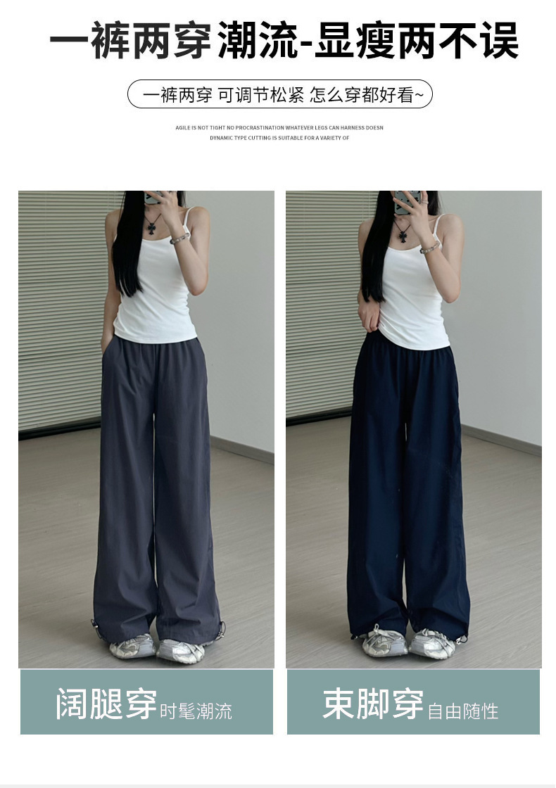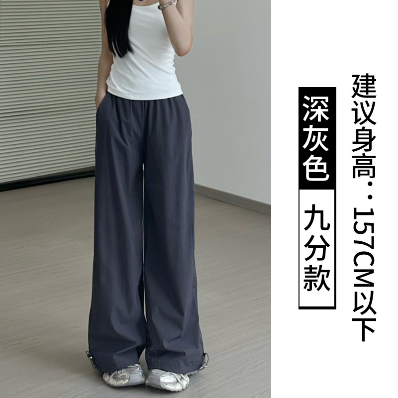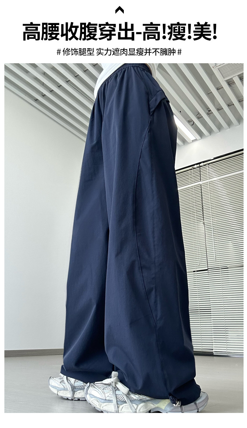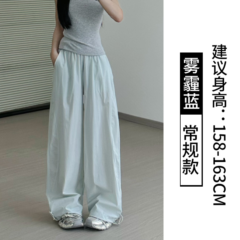 블루 빠른 건조 오버홀 여성 여름 얇은 느슨한 캐주얼 높은 허리 Draphy 스트레이트 작은 와이드 레그 스포츠 바지스토어 가기