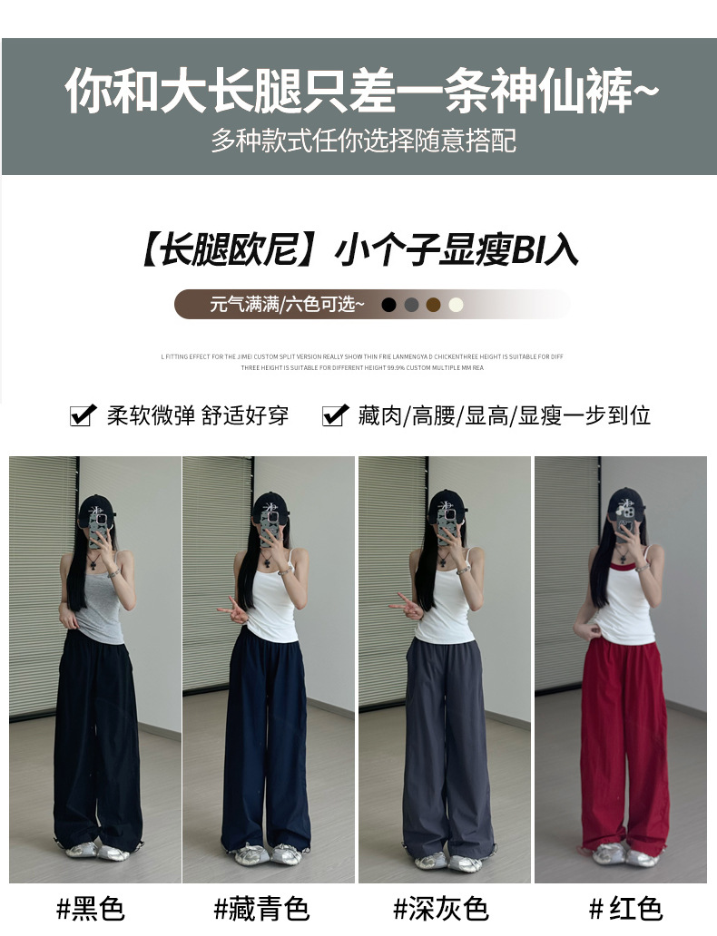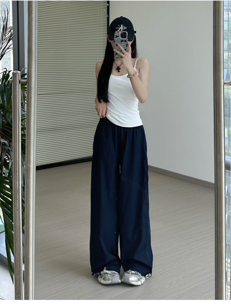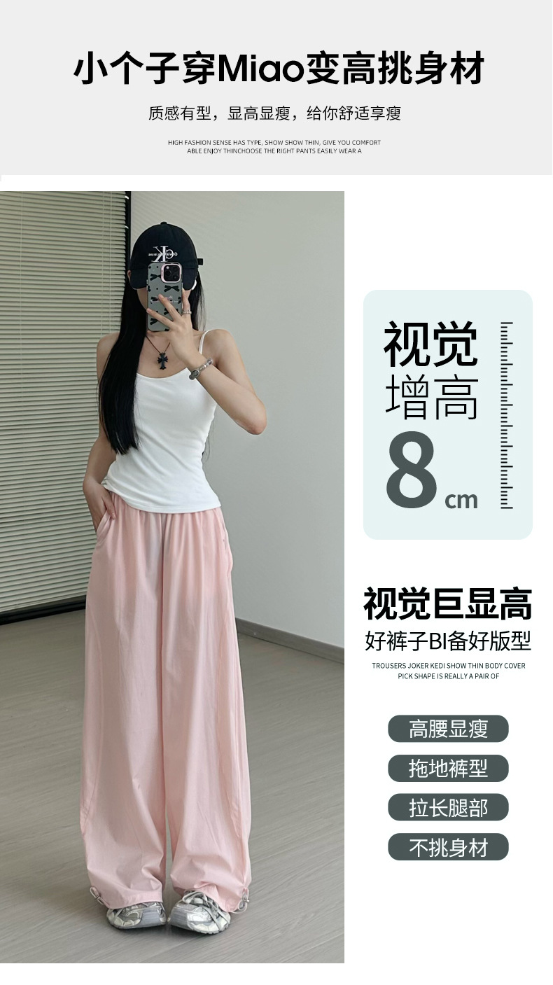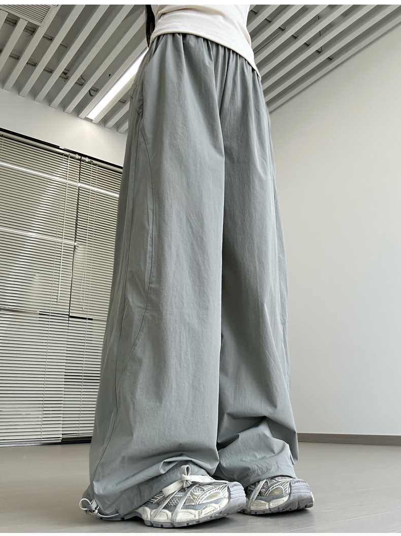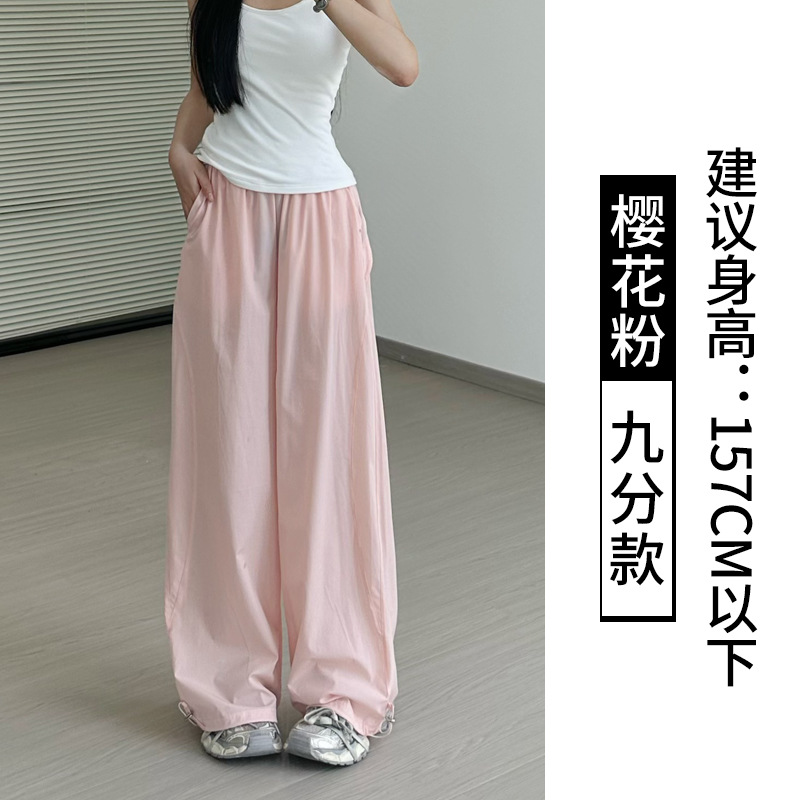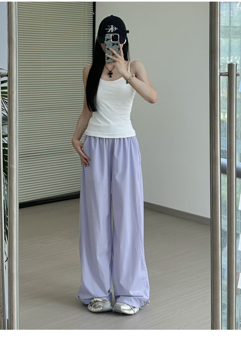 블루 빠른 건조 오버홀 여성 여름 얇은 느슨한 캐주얼 높은 허리 Draphy 스트레이트 작은 와이드 레그 스포츠 바지스토어 가기