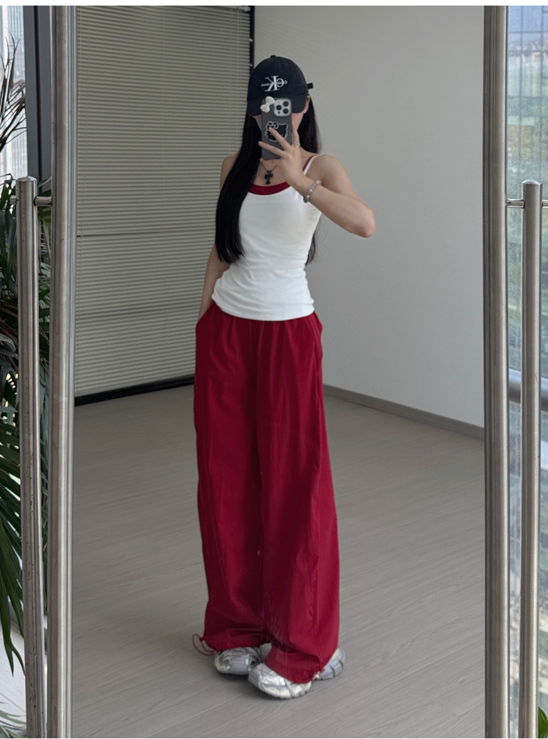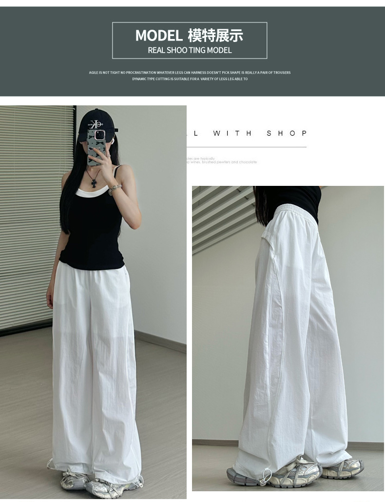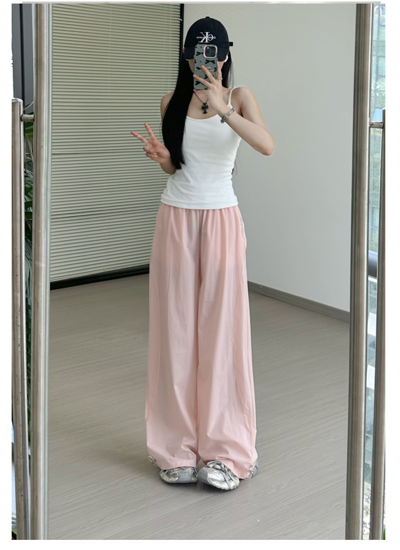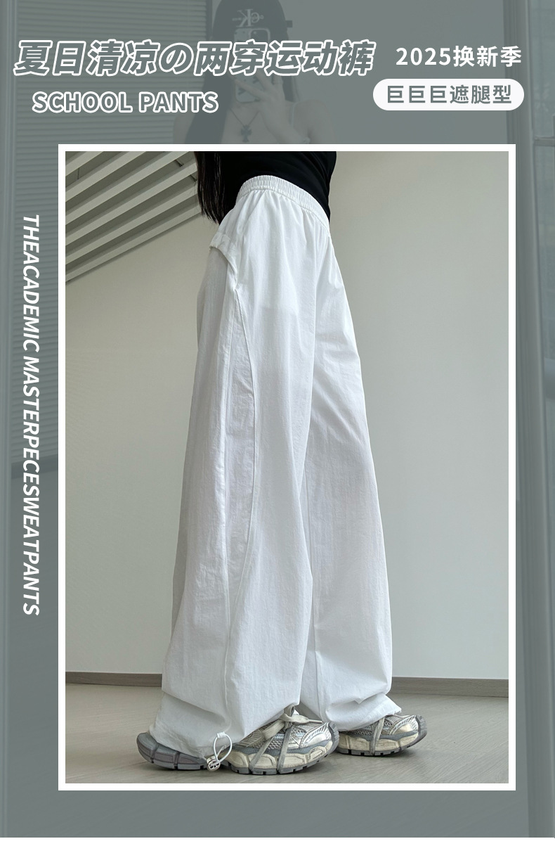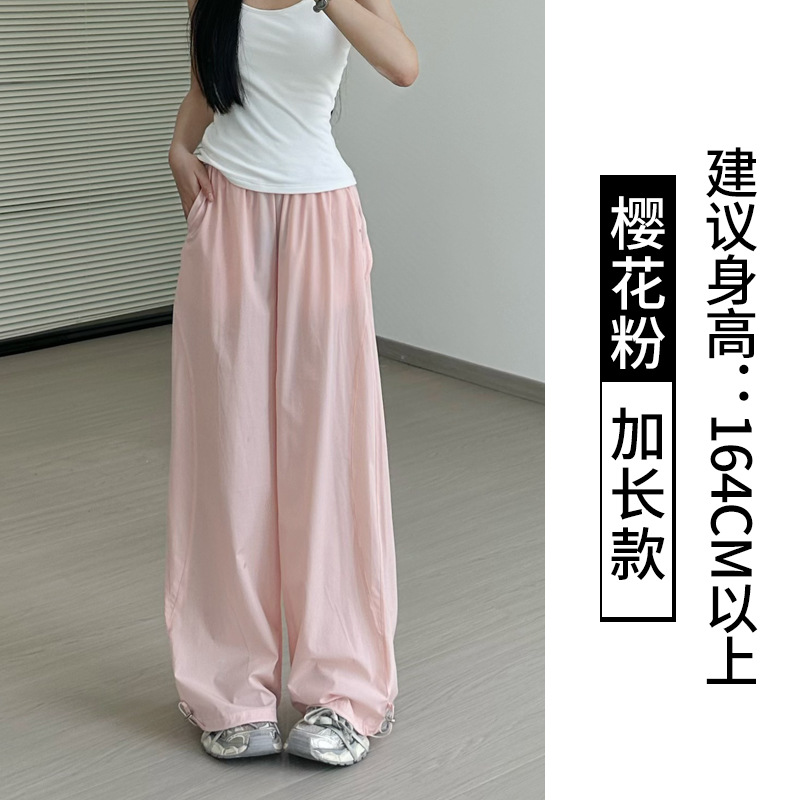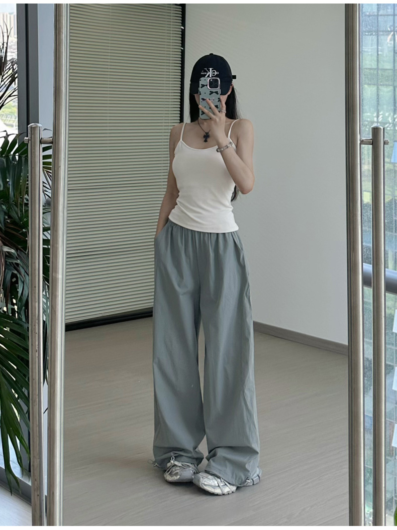 블루 빠른 건조 오버홀 여성 여름 얇은 느슨한 캐주얼 높은 허리 Draphy 스트레이트 작은 와이드 레그 스포츠 바지스토어 가기