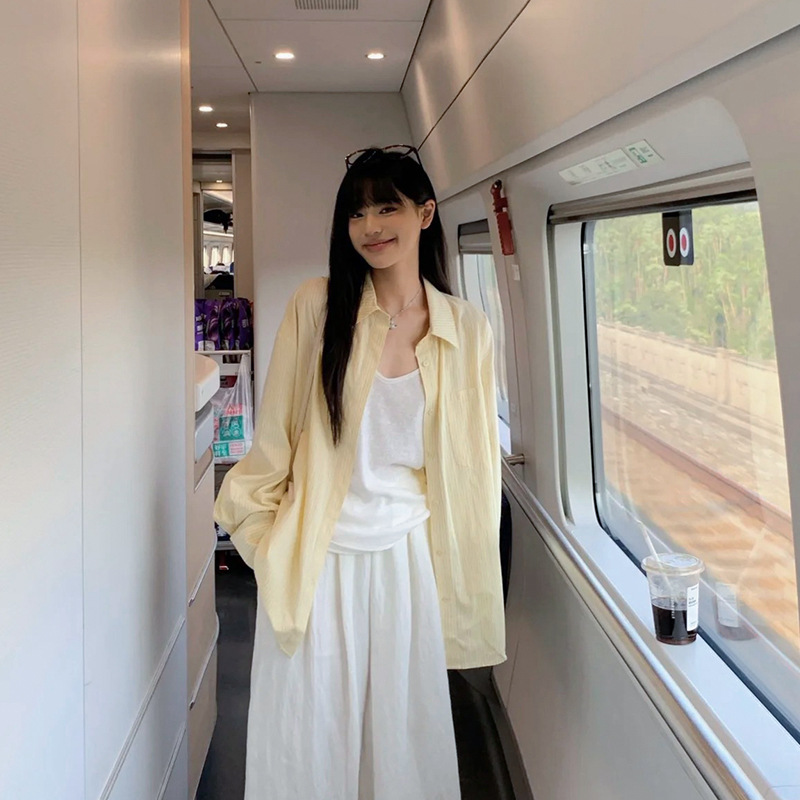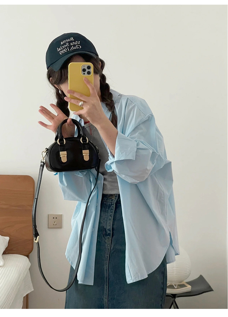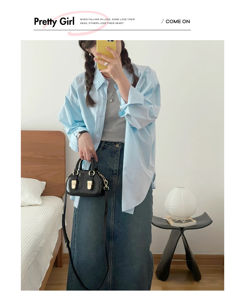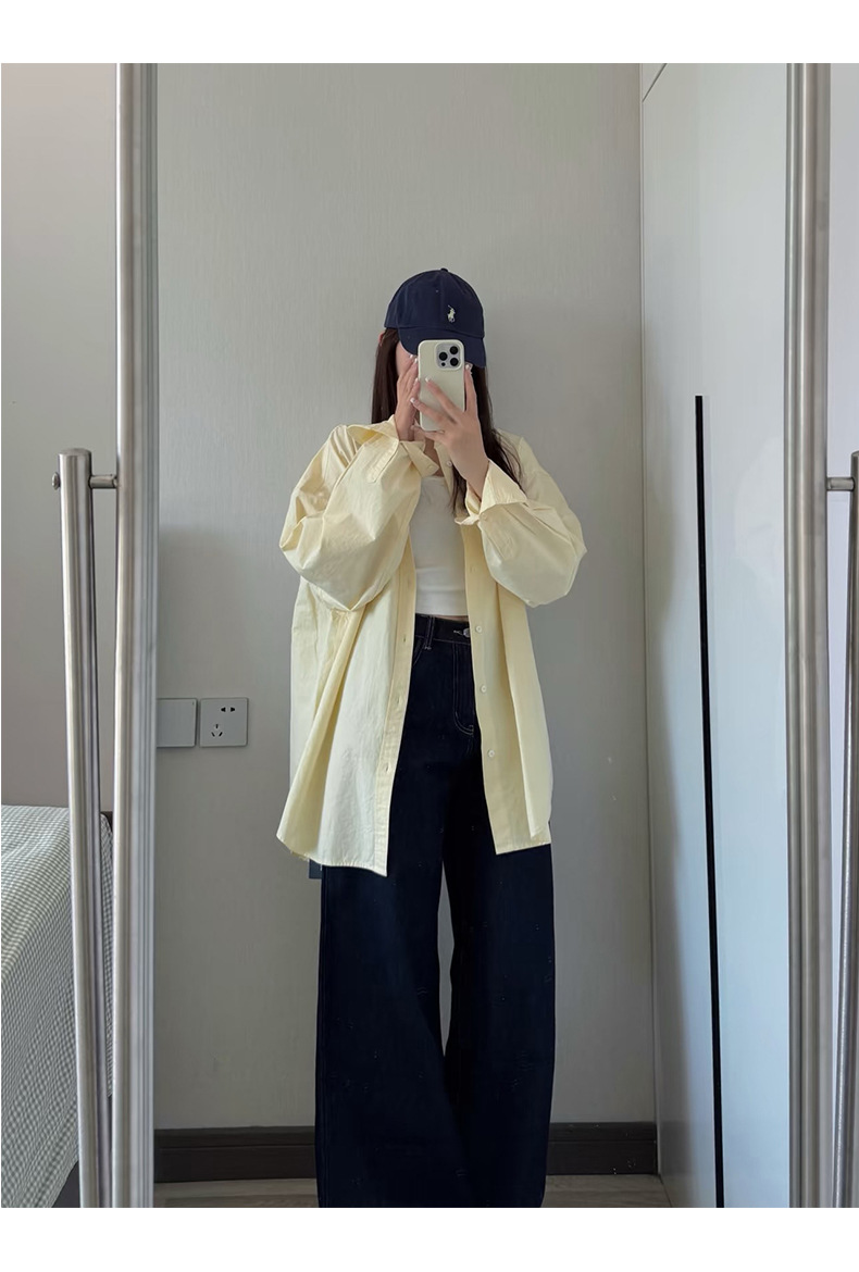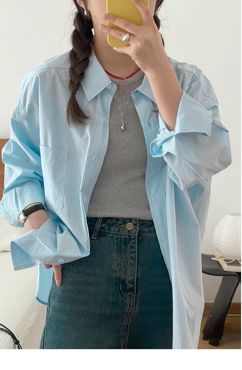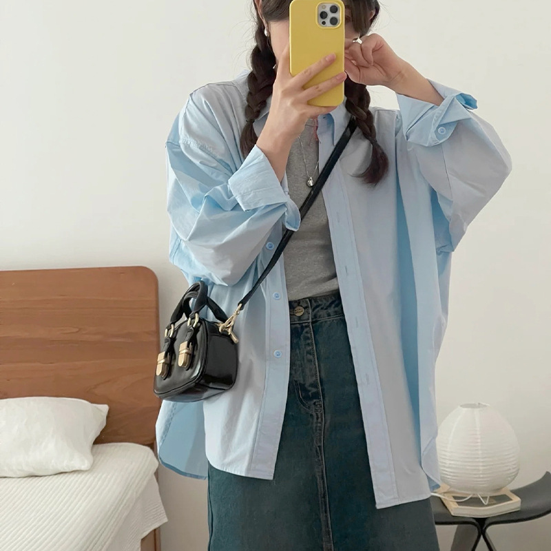 무 아저씨 순면 블루 셔츠 코트 여성의 2025 새로운 스타일 작은 나이 감소 외국 스타일 셔츠 긴 소매 탑스토어 가기