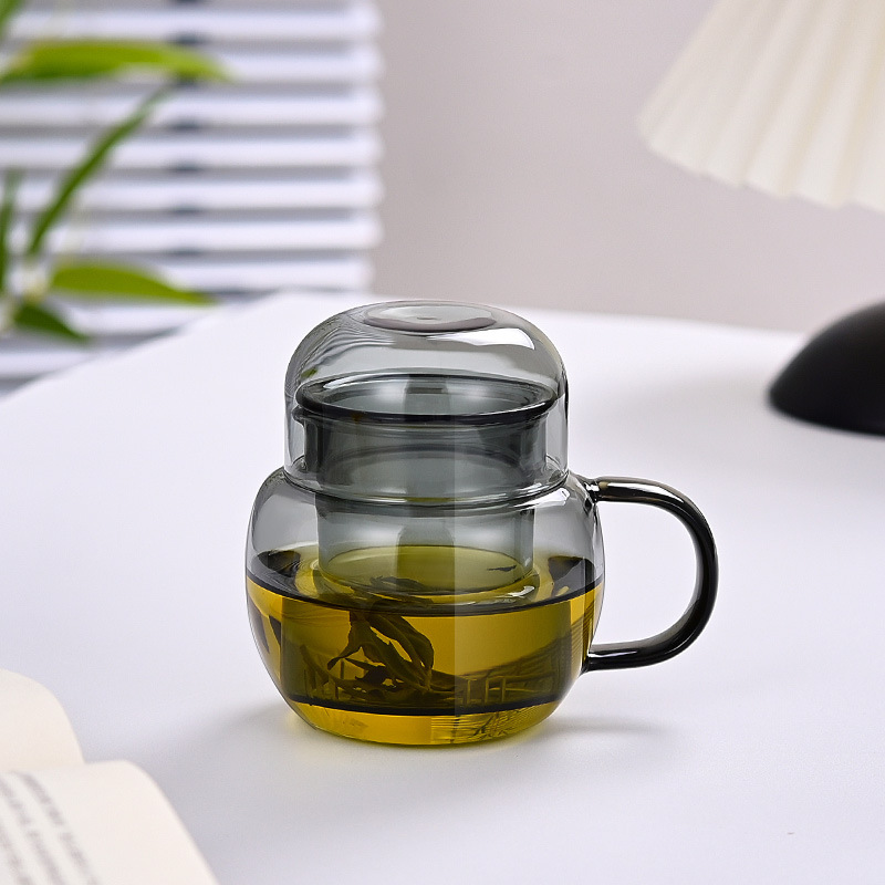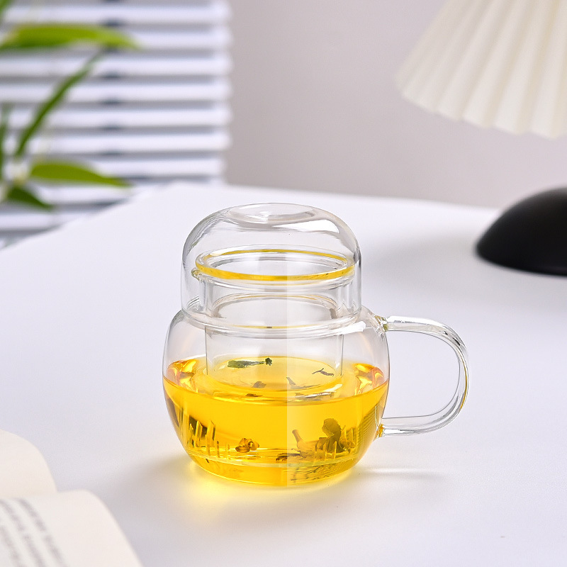차와 물을 분리할 수 있는 국경 간 고붕규산 유리 미니 찻잔, 손잡이가 있는 3피스 컵, 가정용 식수용 고급형