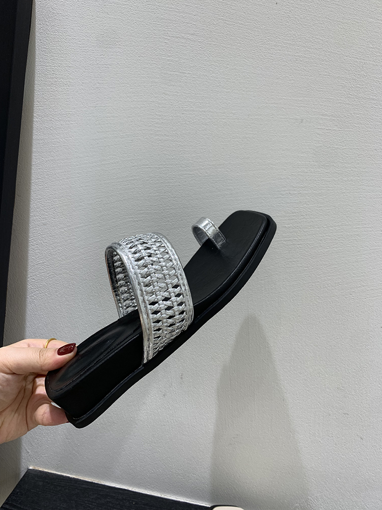 틈새 실버 웨지 슬리퍼 여성용 여름 하이힐 샌들 보헤미안 스타일 통 샌들 슬라이드