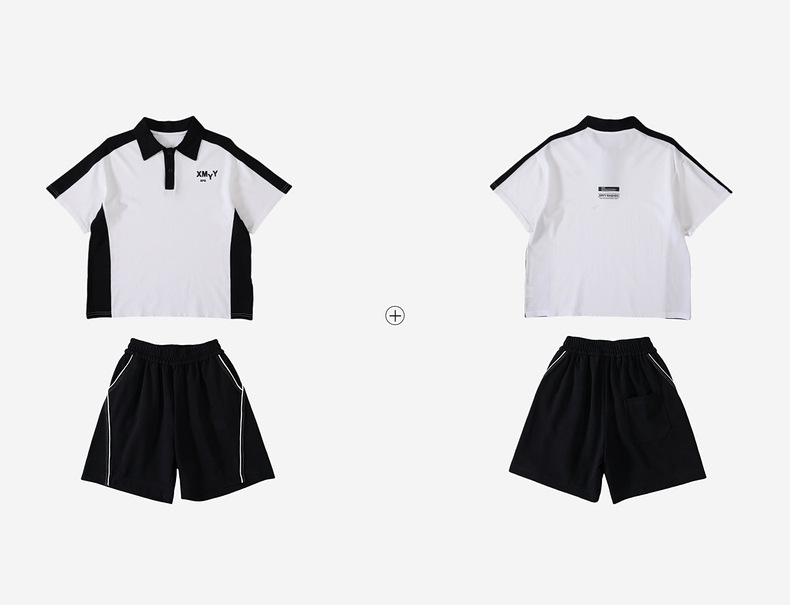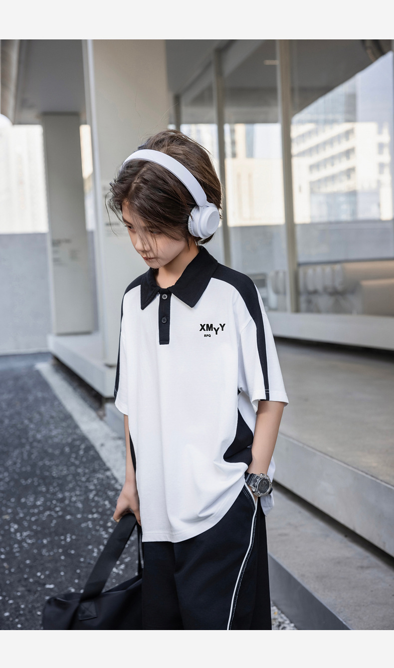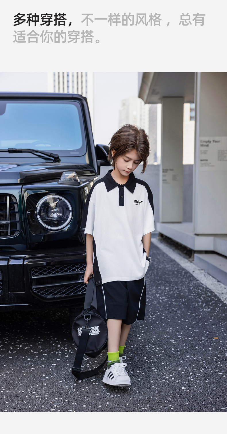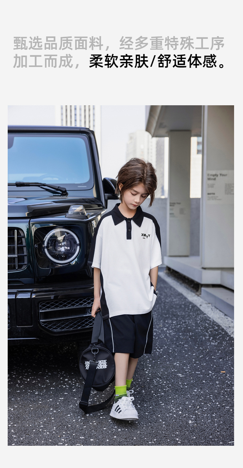 Panda Yuanyuan 2025 새로운 여름 시원한 소년 폴로 정장 어린이 반팔 반팔 투피스 세트 도매스토어 가기