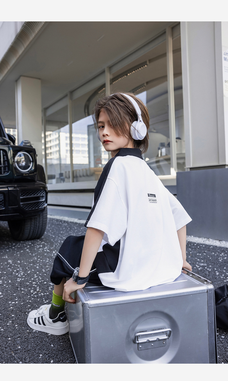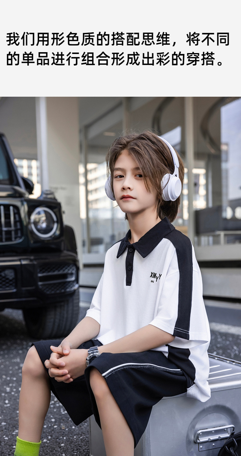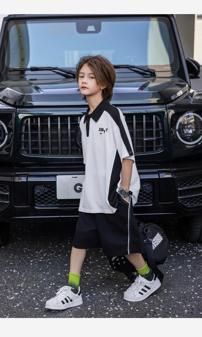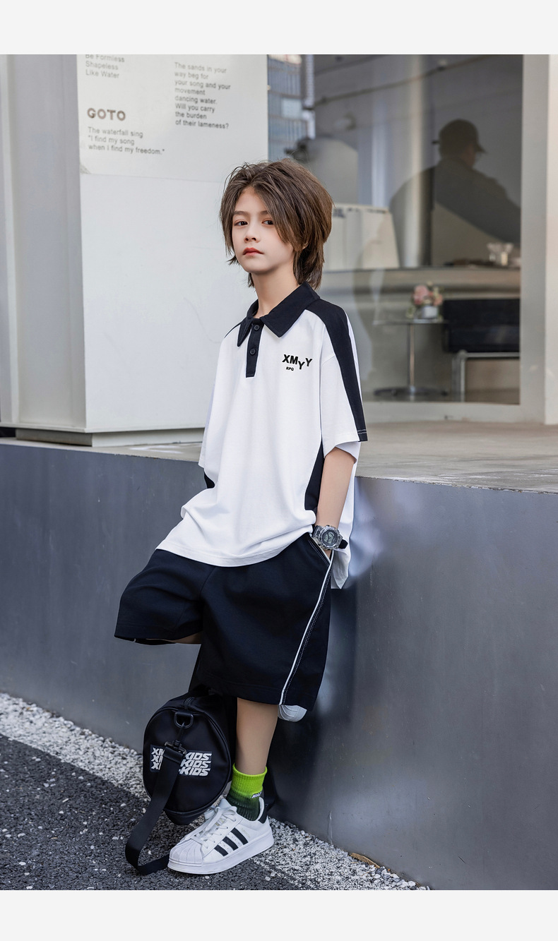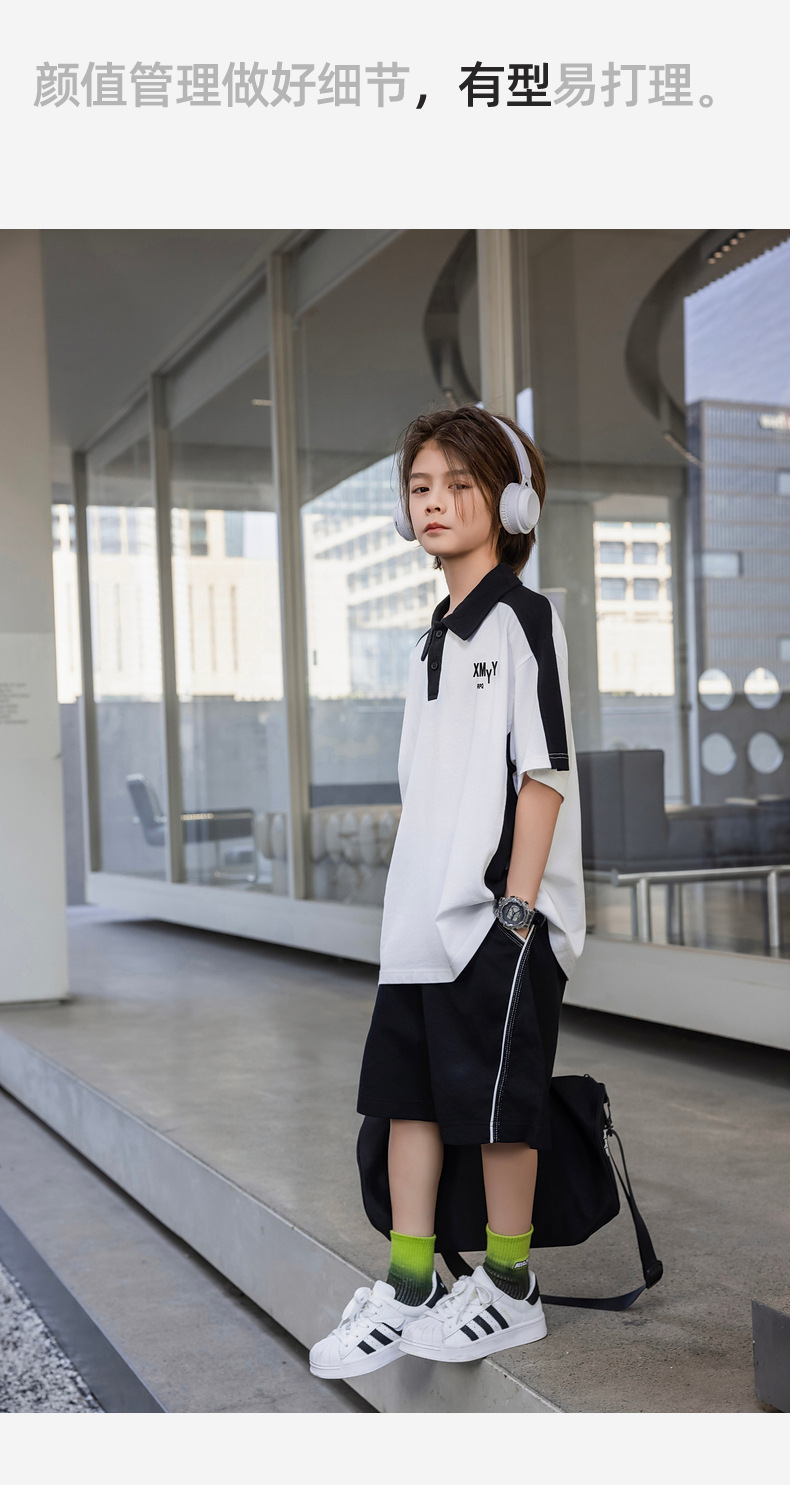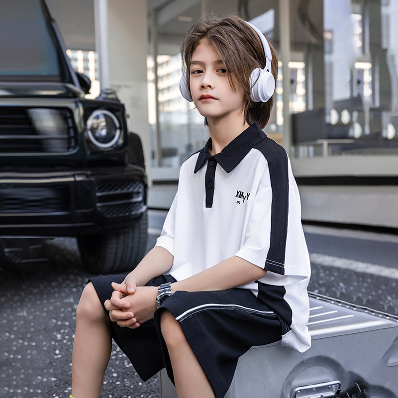 Panda Yuanyuan 2025 새로운 여름 시원한 소년 폴로 정장 어린이 반팔 반팔 투피스 세트 도매