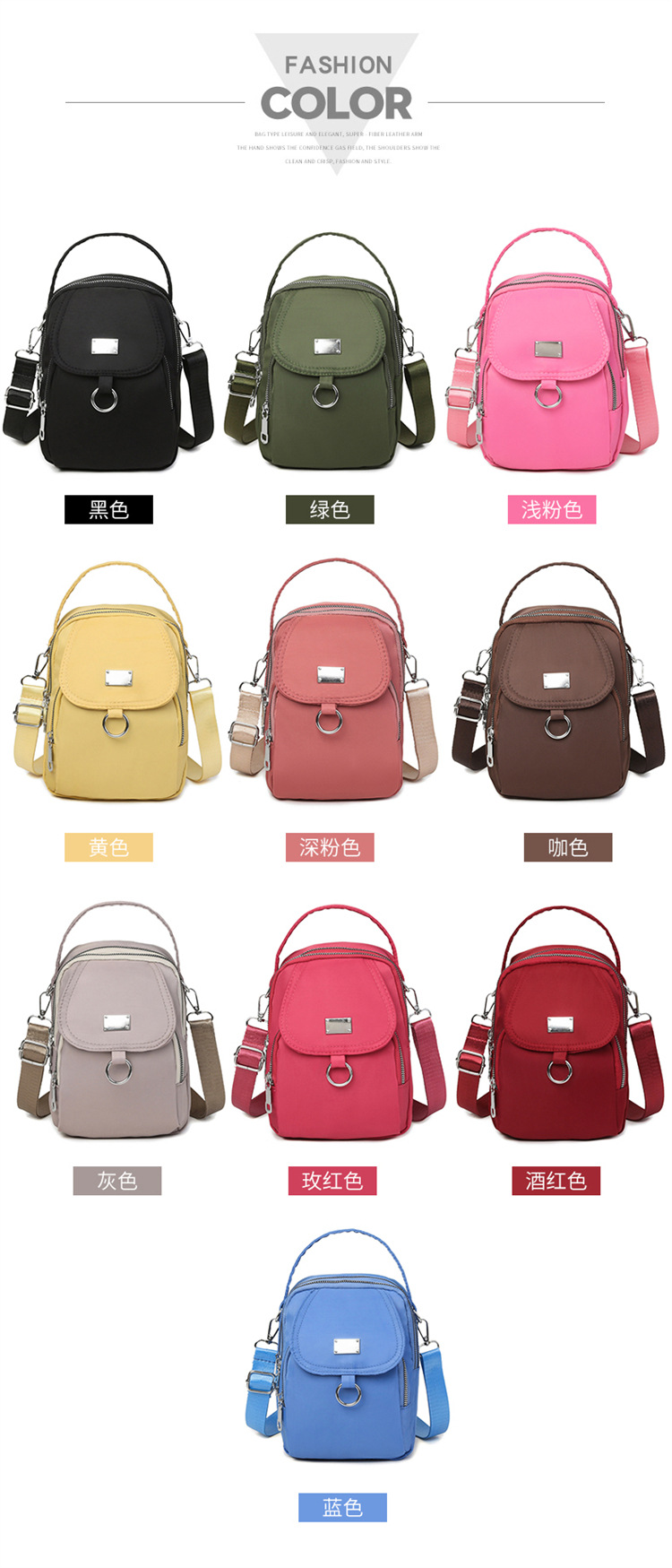 한국 스타일 작은 가방 휴대 전화 가방 크로스 바디 가방 유행 멀티 레이어 어깨 캐주얼 작은 사첼 경량 헝겊 가방 여성용 가방