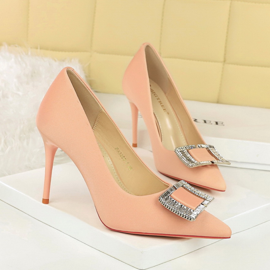 3265-K71 패션 우아한 하이힐 여성 얕은 입 스퀘어 버클 라인스톤 스틸레토 힐 신발 뾰족한 고급 여성용 신발