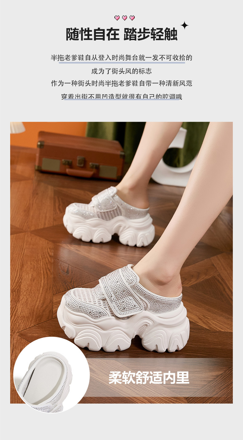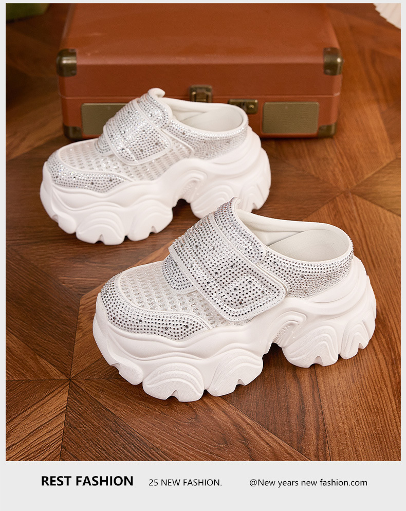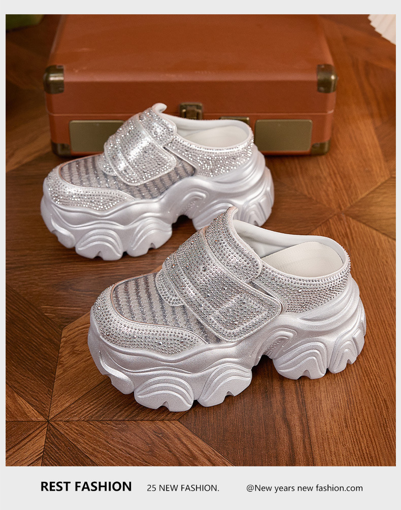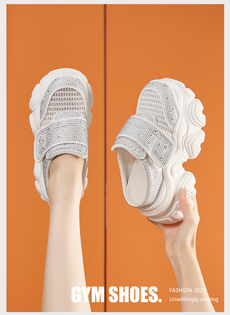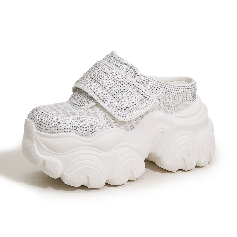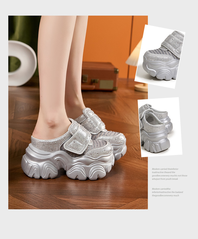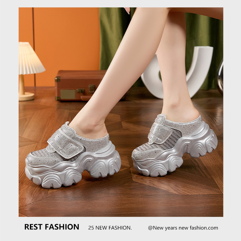두꺼운 단독 반 슬리퍼 여자 2025 년 여름 새로운 올매치 바오터우 아우터 샌들 라인스톤 슈즈 스톰프 내높이 증가 여성 신발스토어 가기