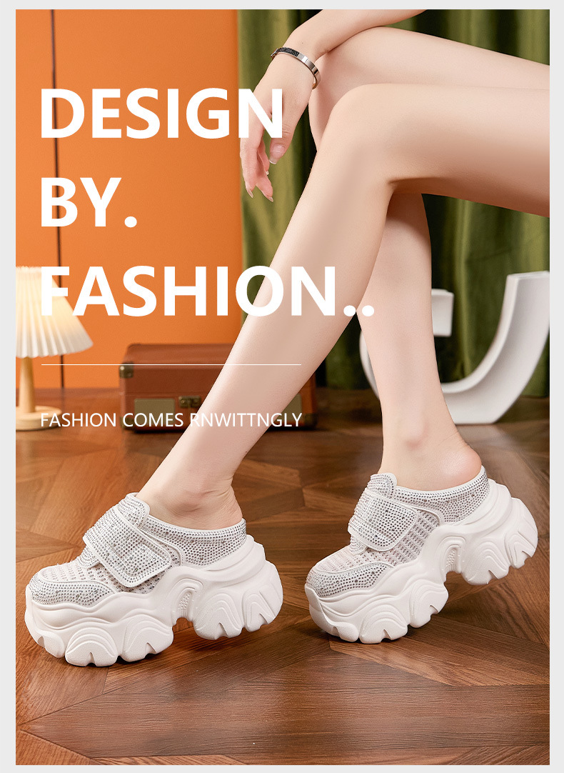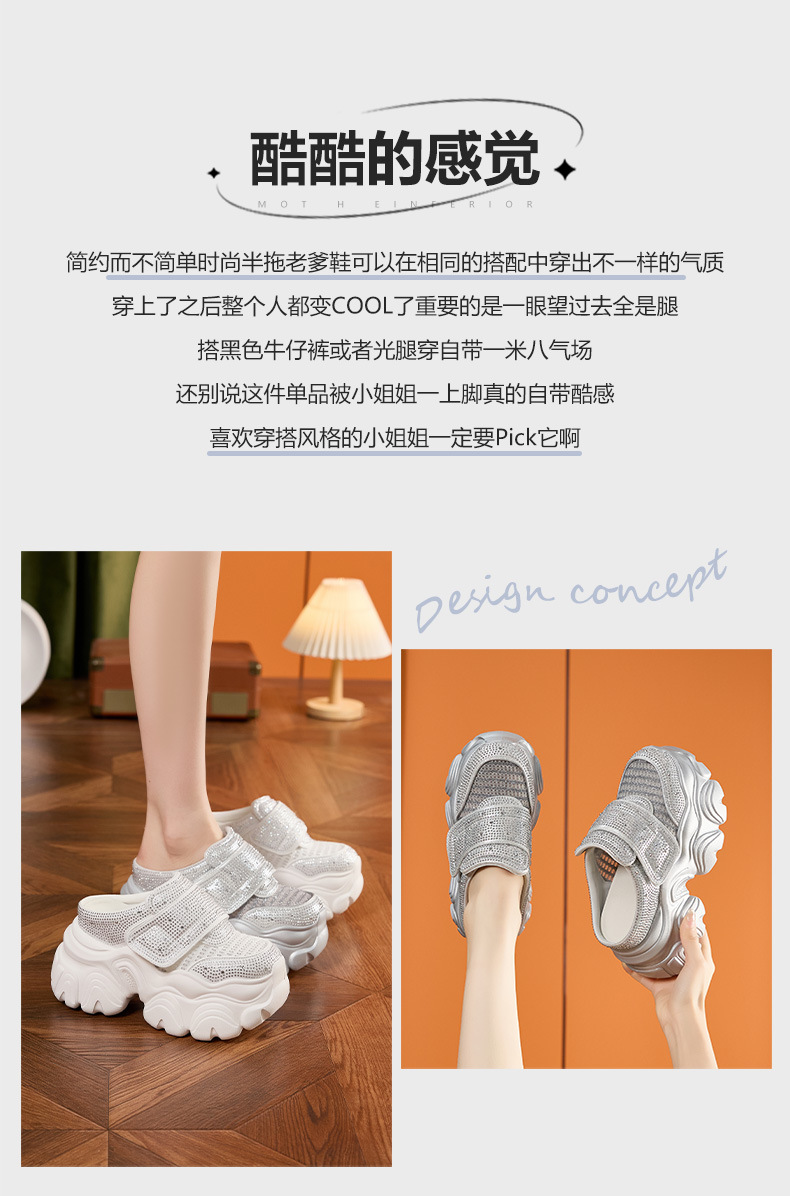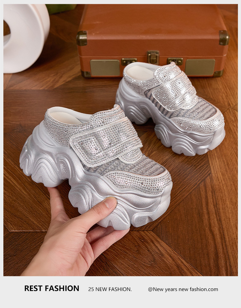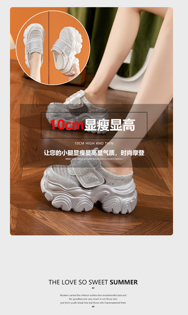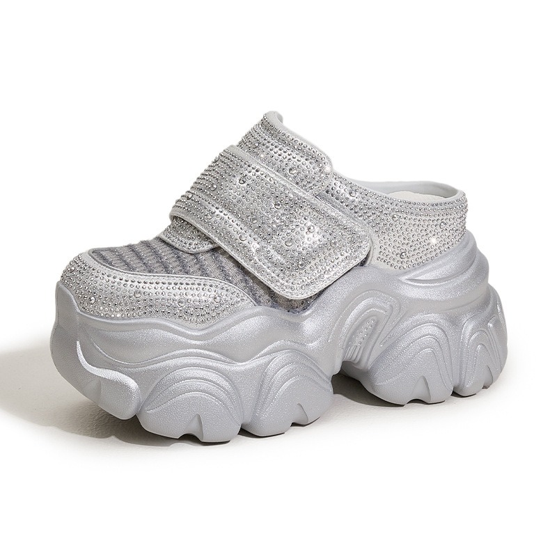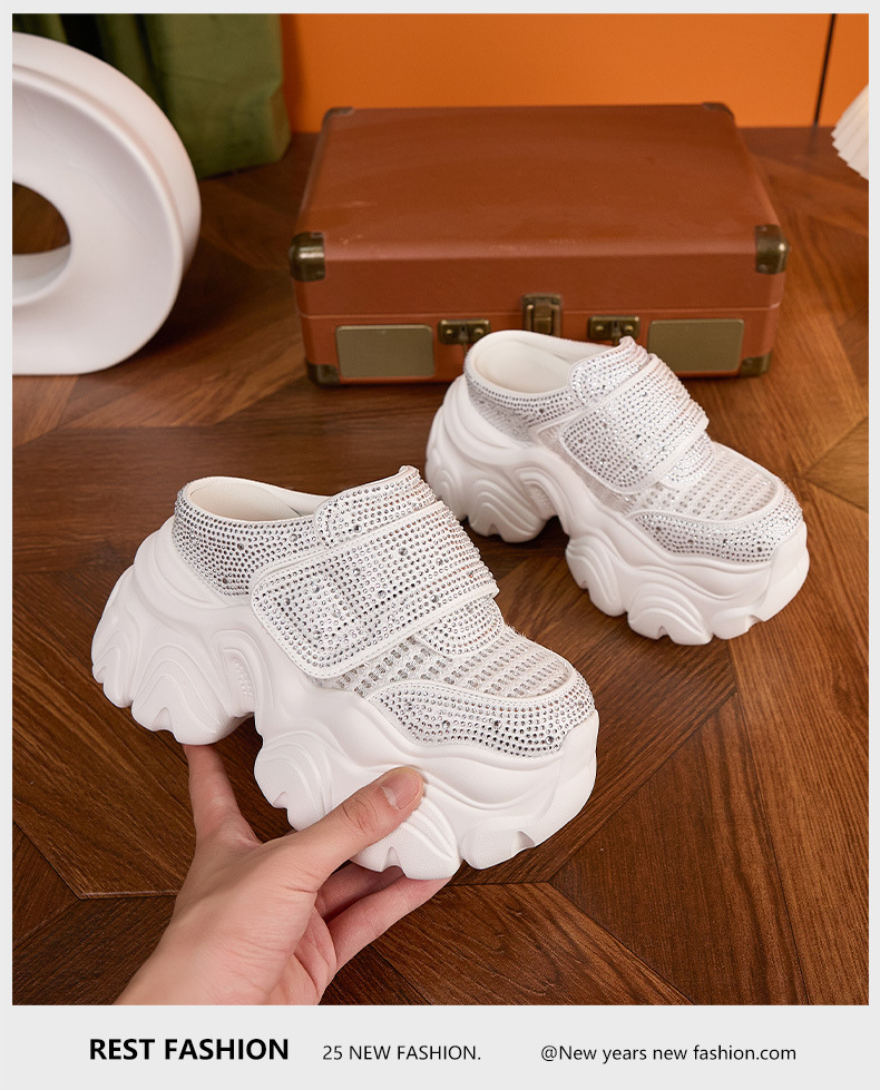 두꺼운 단독 반 슬리퍼 여자 2025 년 여름 새로운 올매치 바오터우 아우터 샌들 라인스톤 슈즈 스톰프 내높이 증가 여성 신발스토어 가기