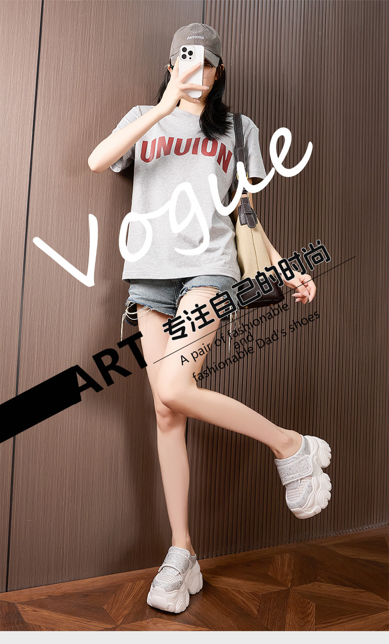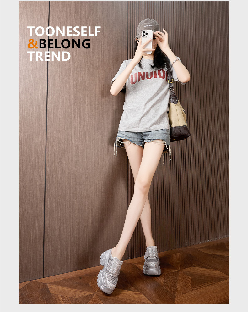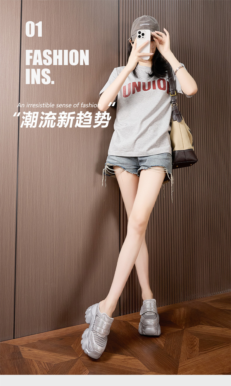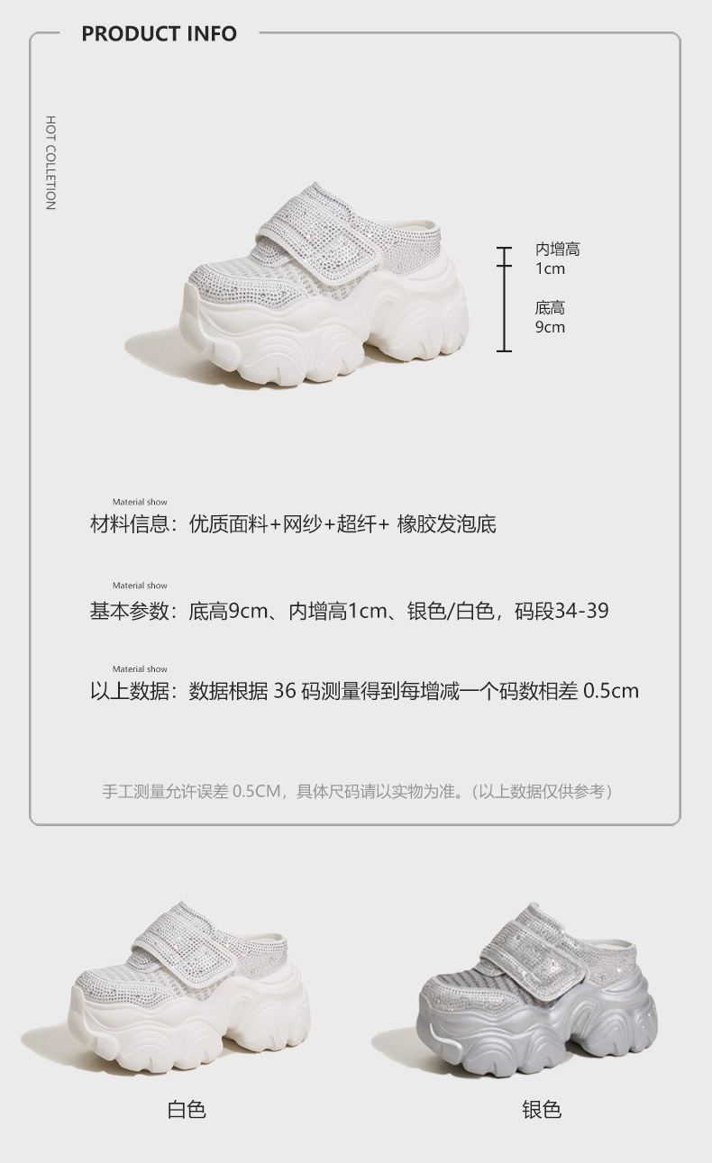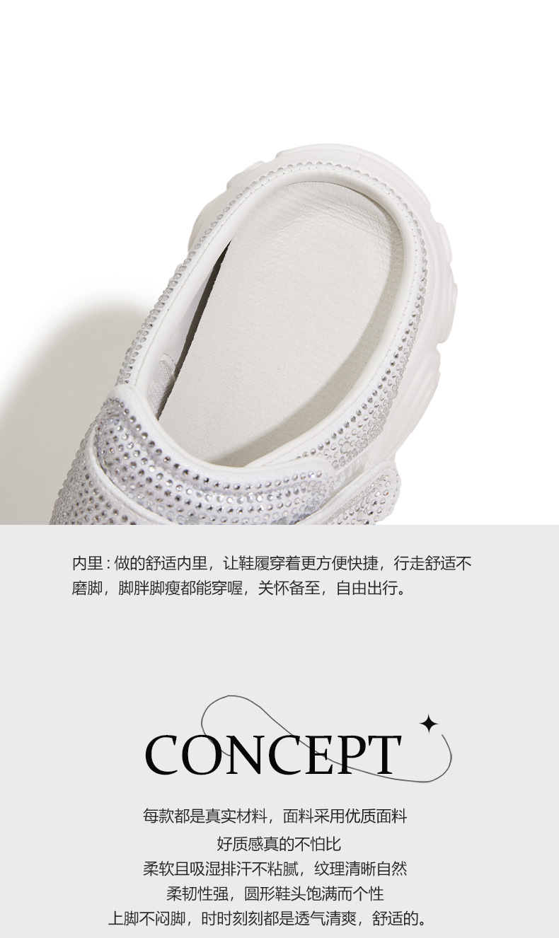 두꺼운 단독 반 슬리퍼 여자 2025 년 여름 새로운 올매치 바오터우 아우터 샌들 라인스톤 슈즈 스톰프 내높이 증가 여성 신발스토어 가기