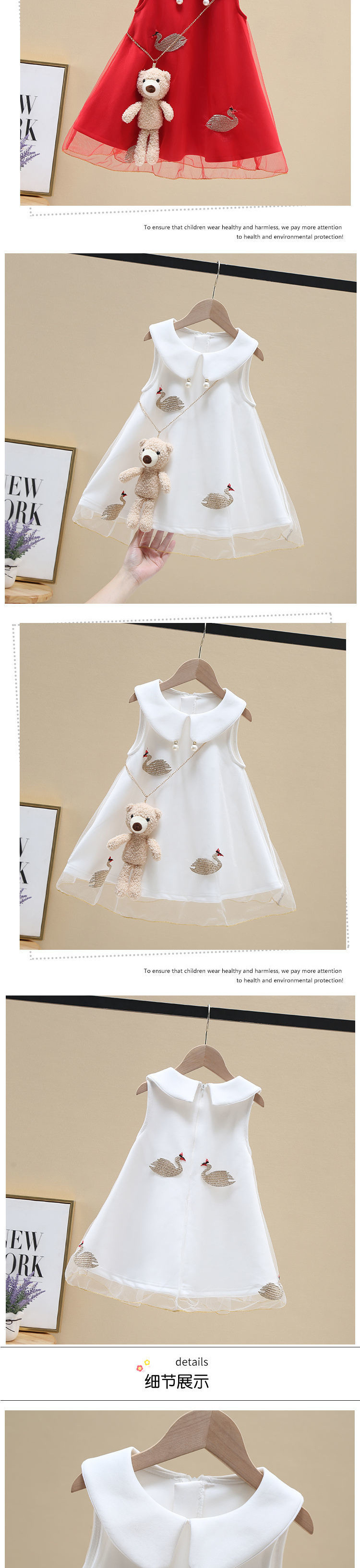 인터넷 연예인 새로운 스타일 공주 드레스 아기 한국어 버전 메쉬 스커트 소녀 여름 흰색 백조 드레스 어린이스토어 가기