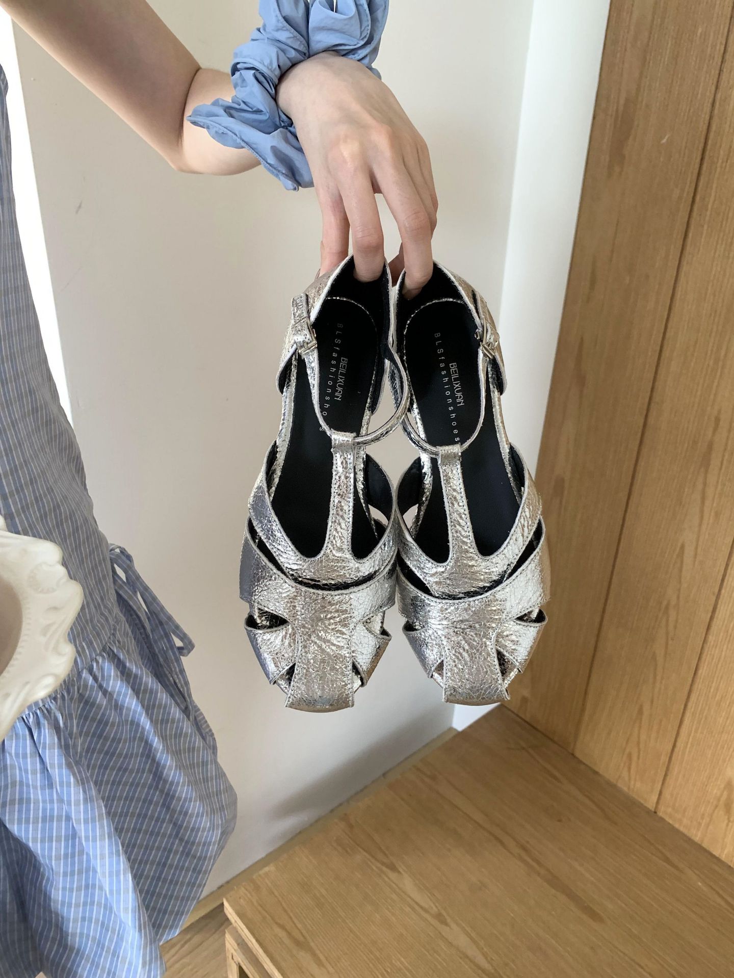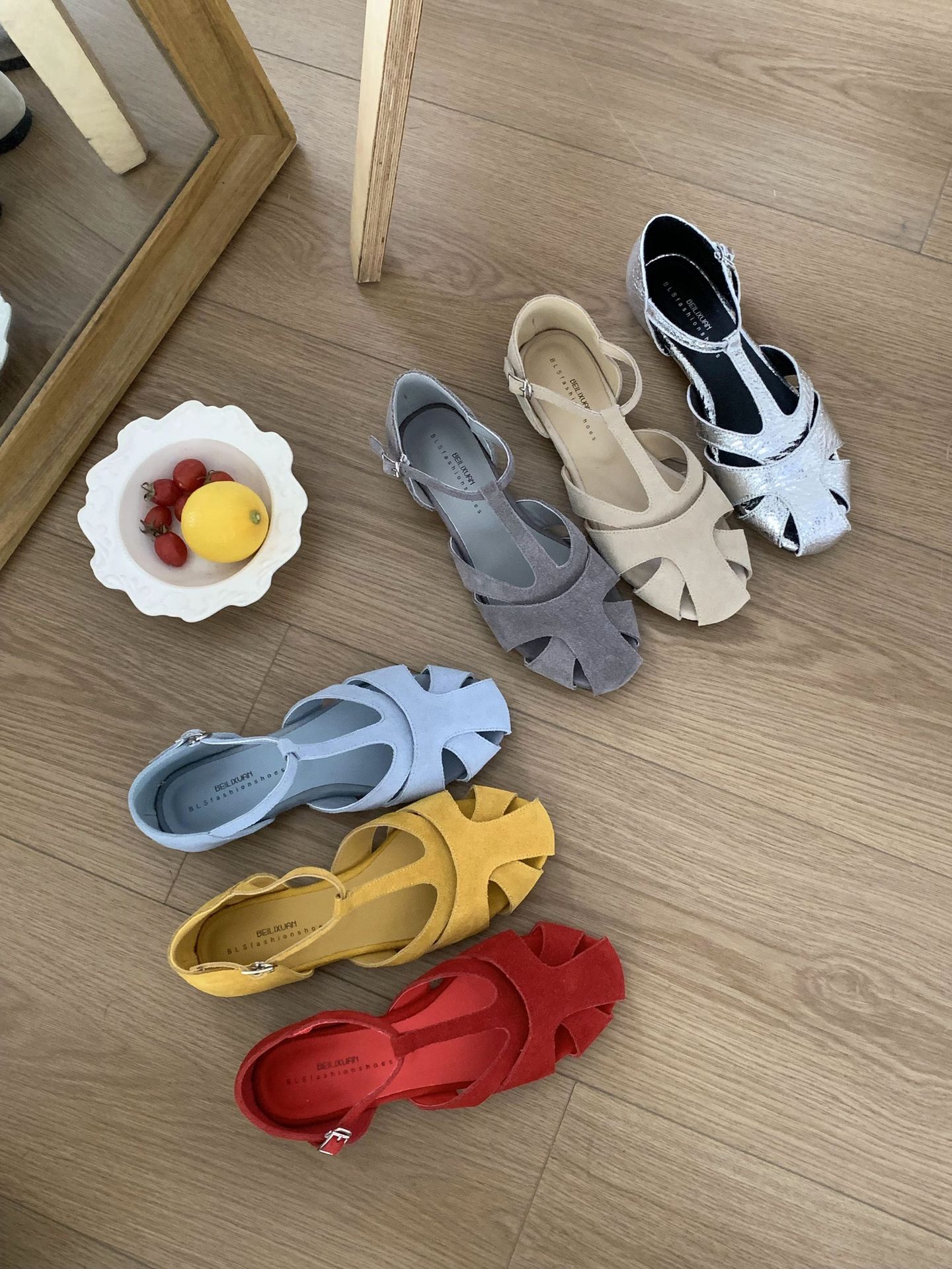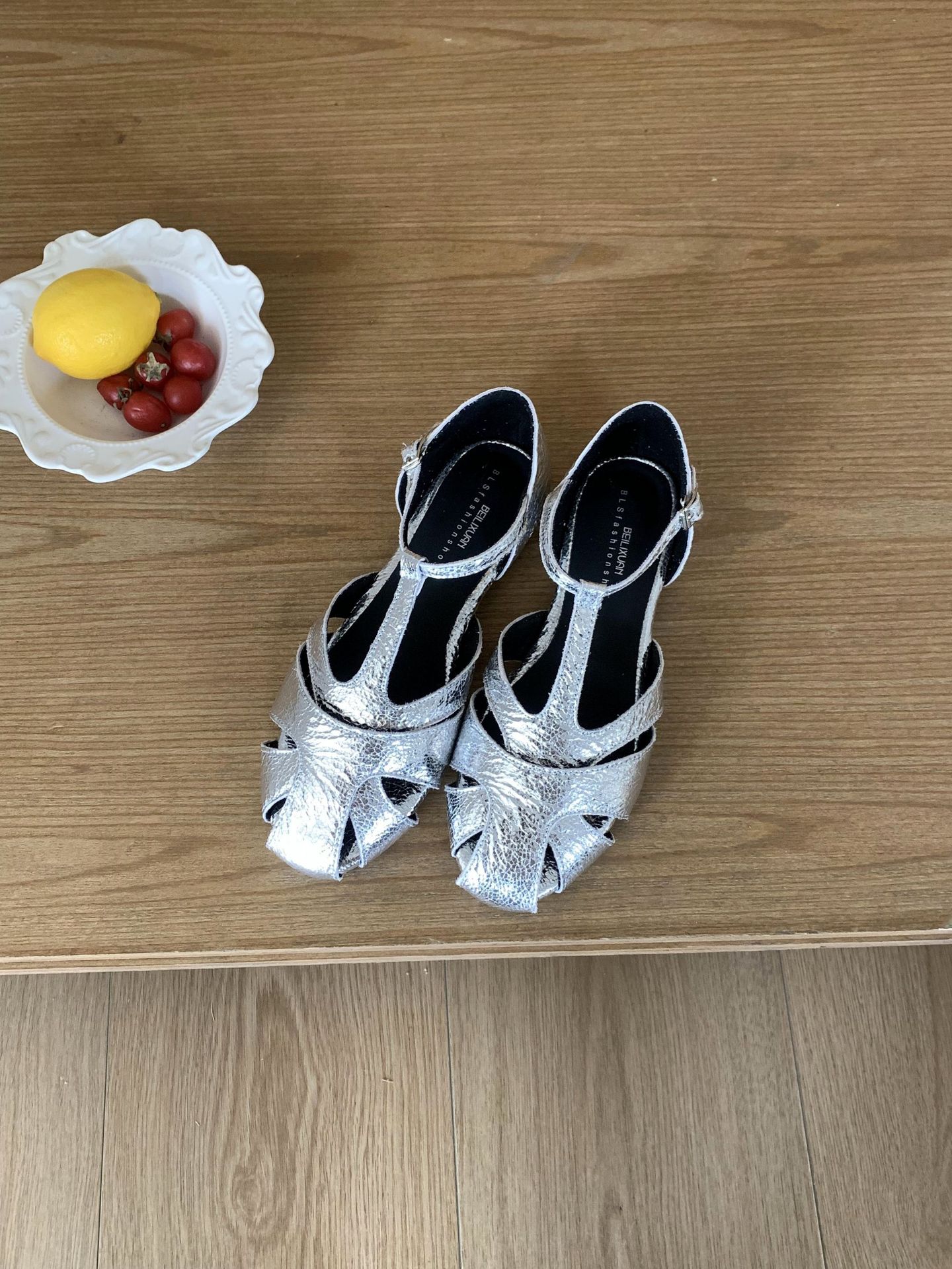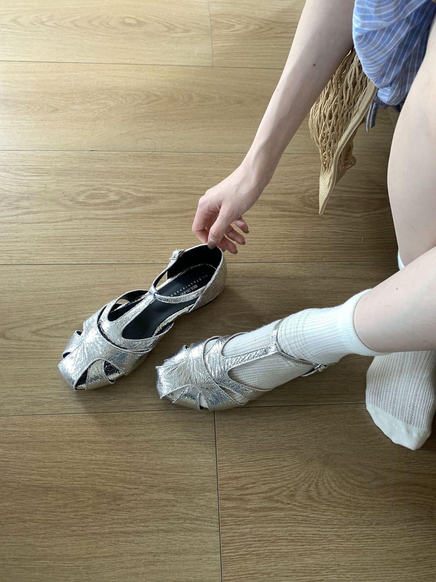 Wenyi 팬 캐시미어 백탑 중공 통기성 2025 여름 두꺼운 낮은 힐 라운드 헤드 가죽 중공 로마 샌들