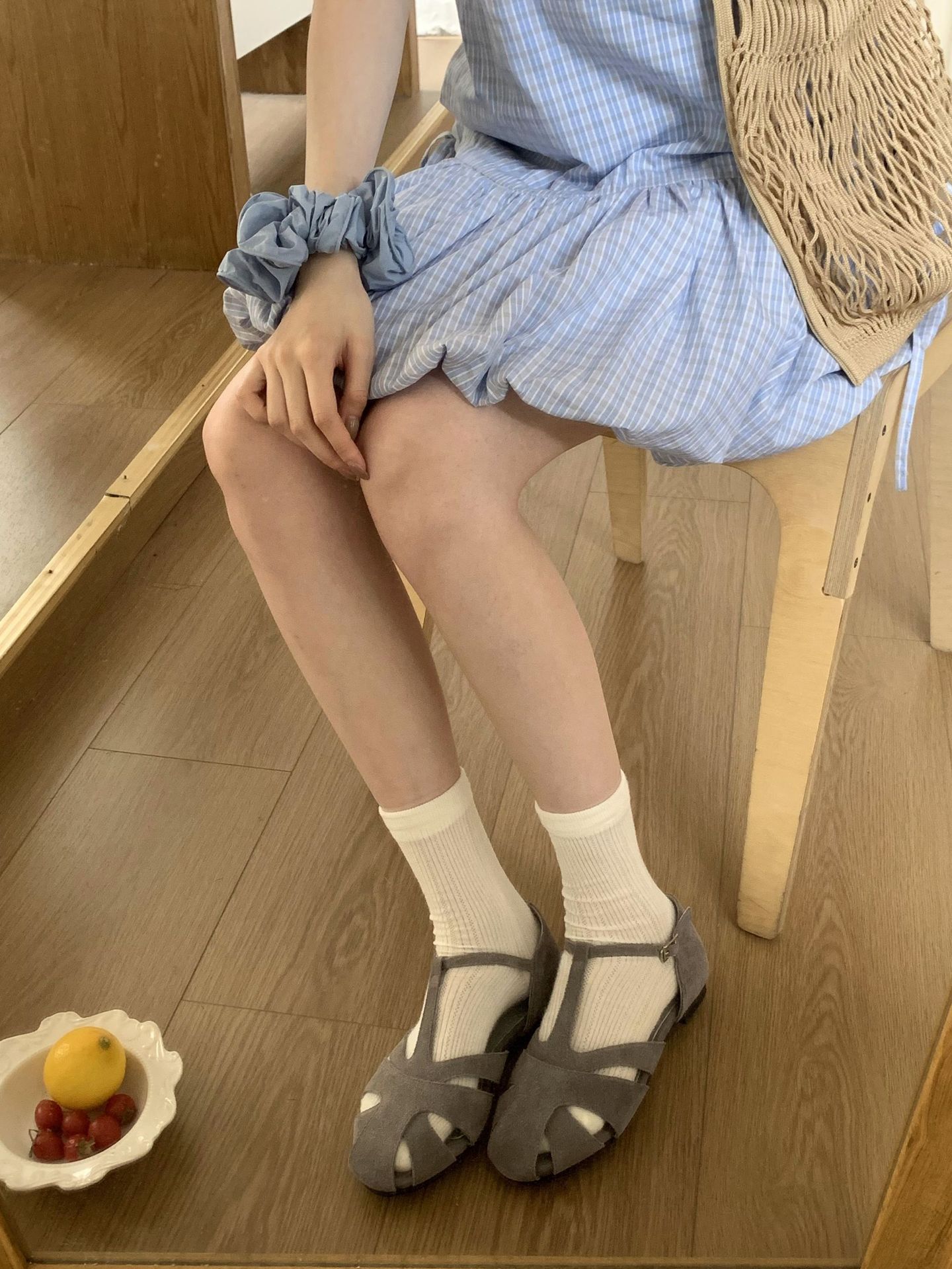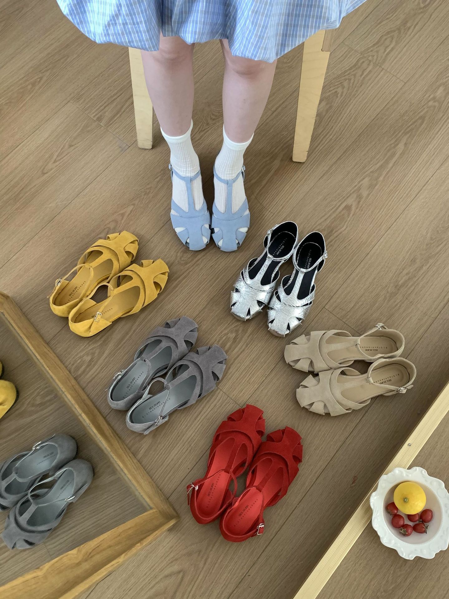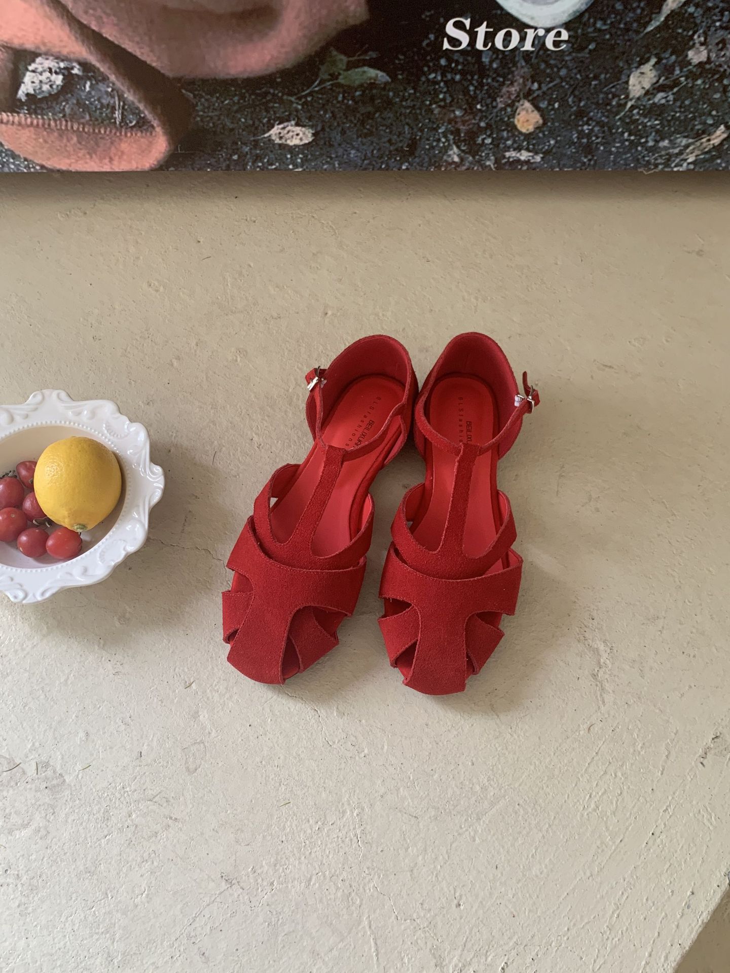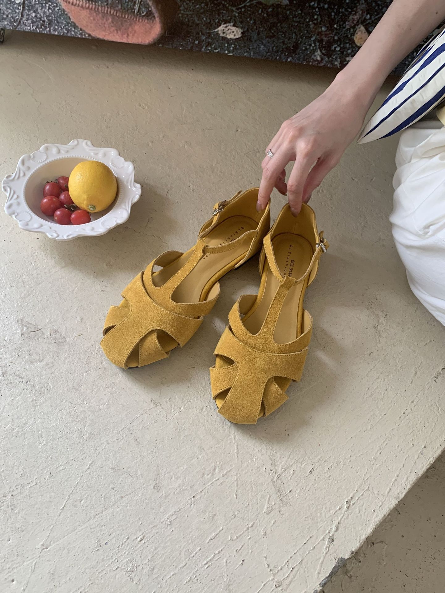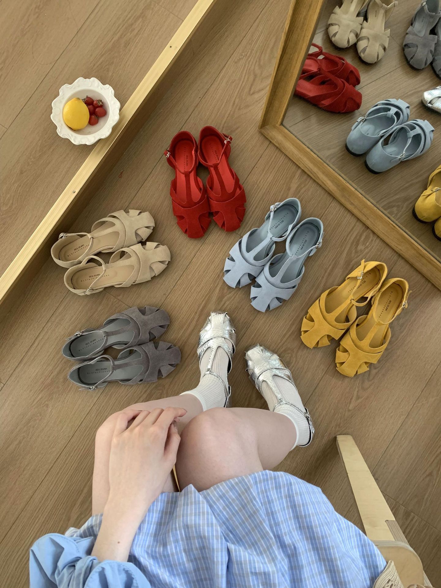 Wenyi 팬 캐시미어 백탑 중공 통기성 2025 여름 두꺼운 낮은 힐 라운드 헤드 가죽 중공 로마 샌들