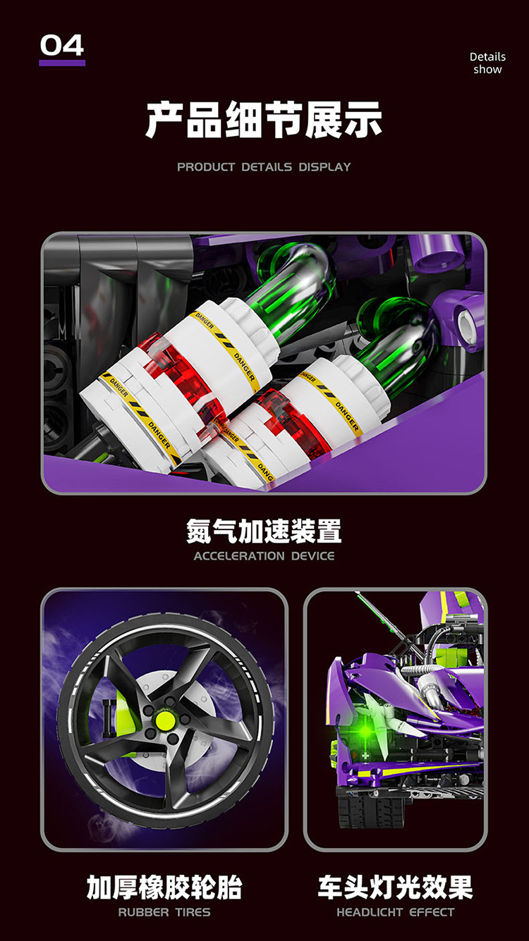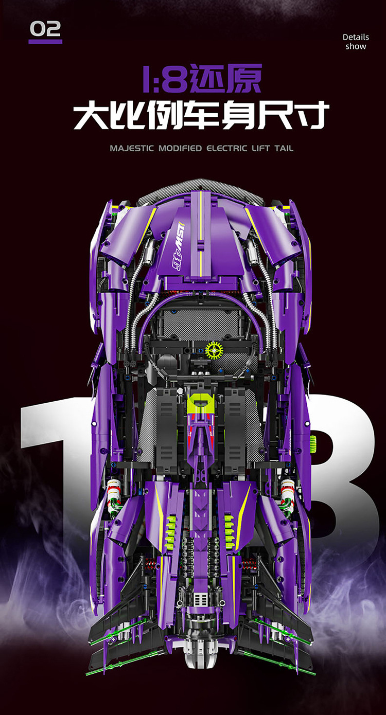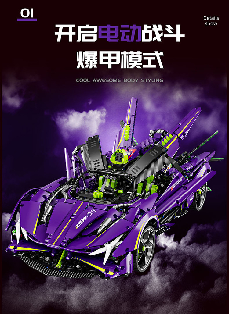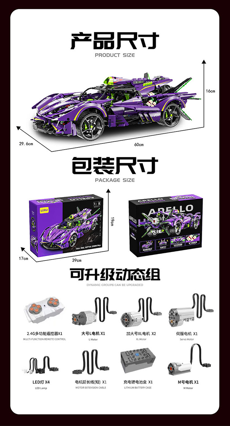 LERU 1:8 슈퍼카 10714 Apollo EVO 3909 입자 퍼즐 빌딩 블록 전기 도금 모델 장난감 크로스보더스토어 가기