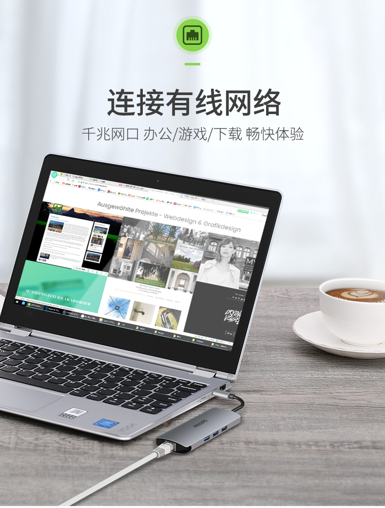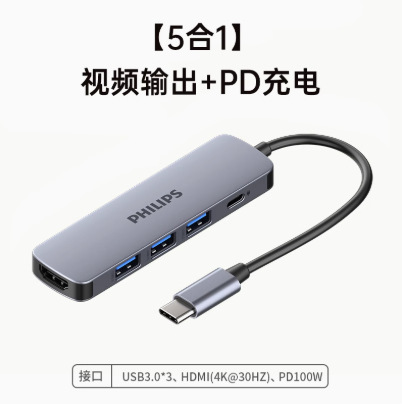 필립스 도킹 스테이션 typec 확장 hdmi 멀티 인터페이스 usb 분배기 네트워크 케이블 어댑터 전기용 기가비트스토어 가기