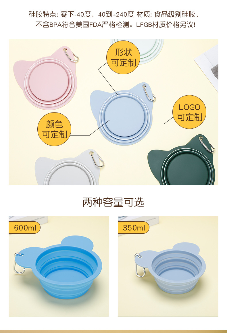 단일 귀 실리콘 접는 그릇 야외 여행 애완 동물 피더 작은 식품 등급 개 그릇 도매 접는 고양이 그릇