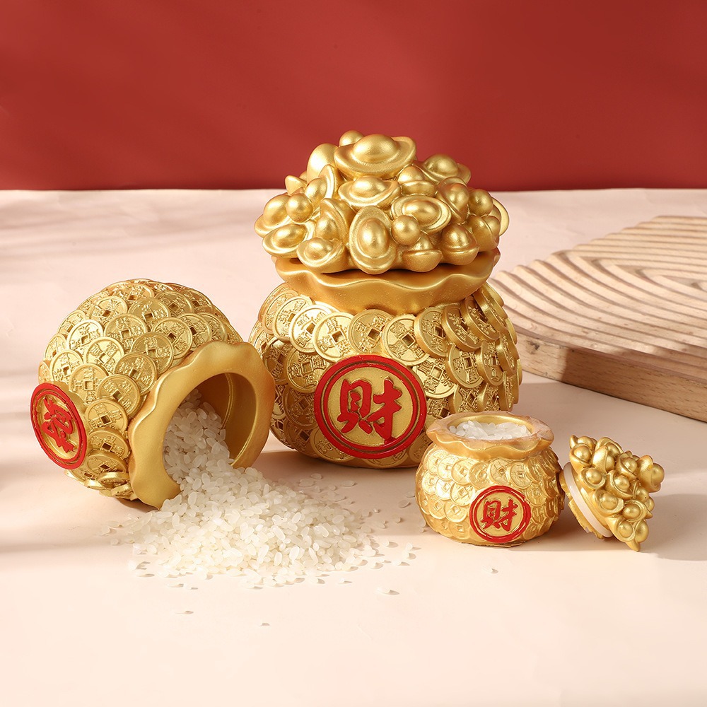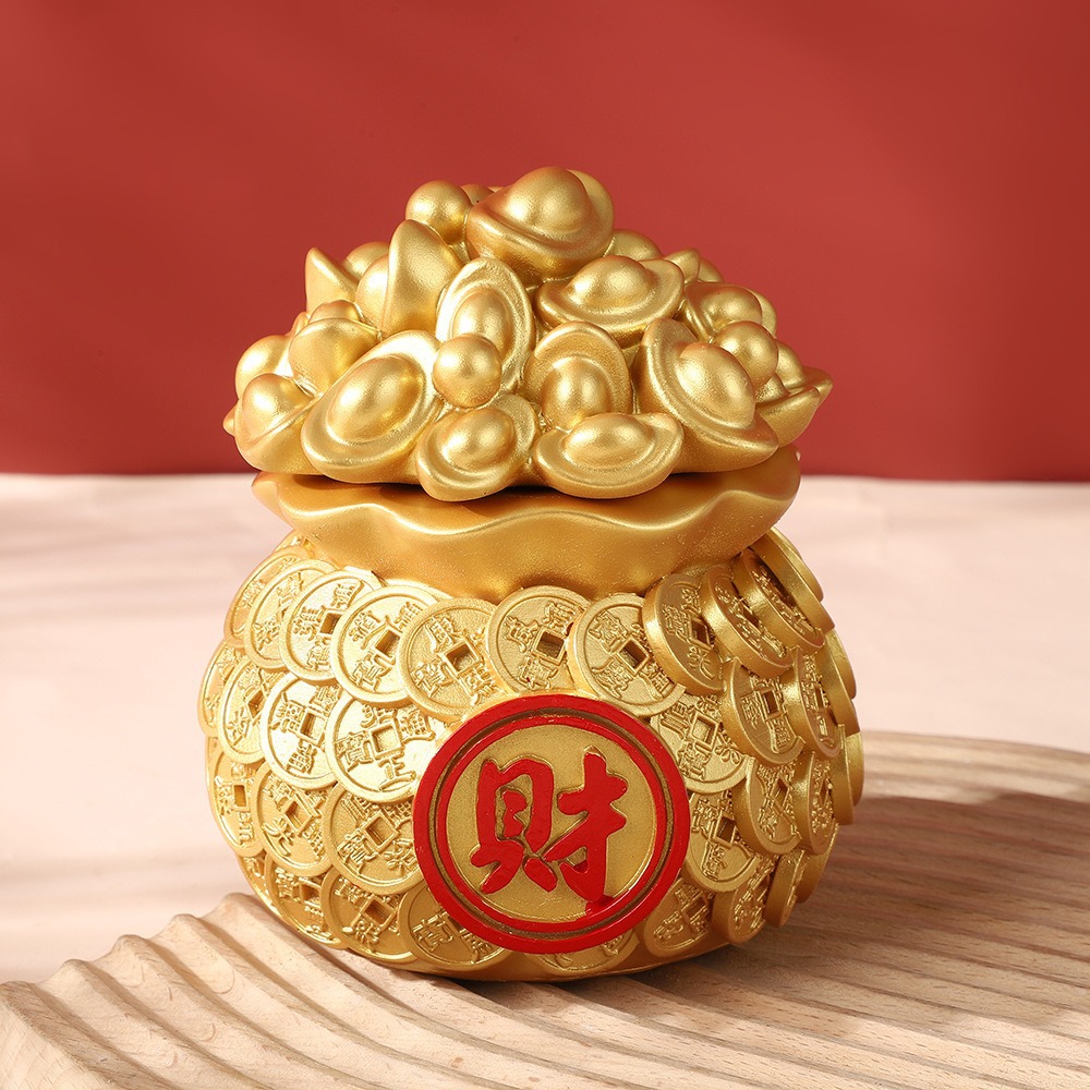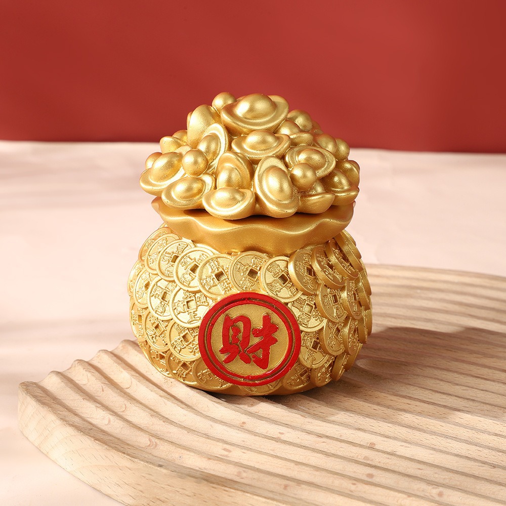 행운과 보물을 끌어들이는 자동차 수지 공예품 돈 가방 새해 집 거실 데스크탑 장식 금괴 복주머니 장식품스토어 가기