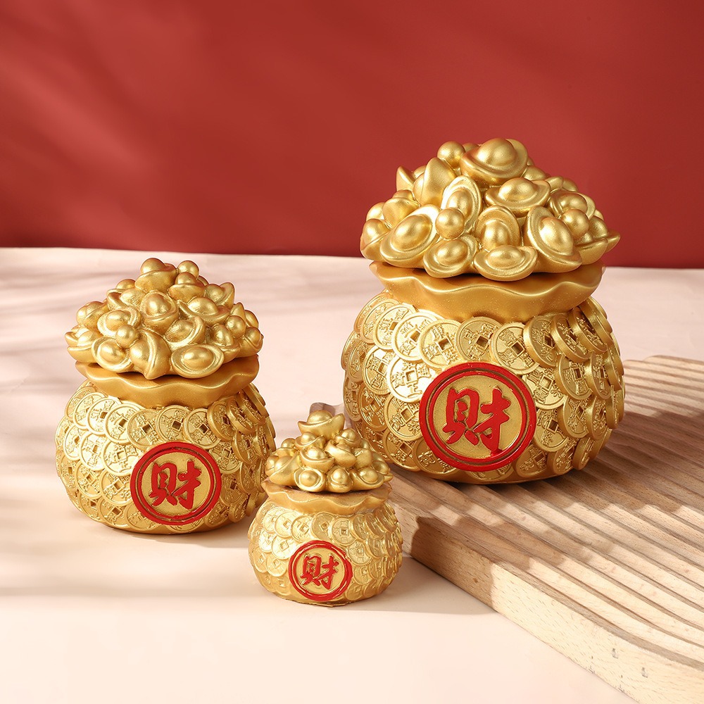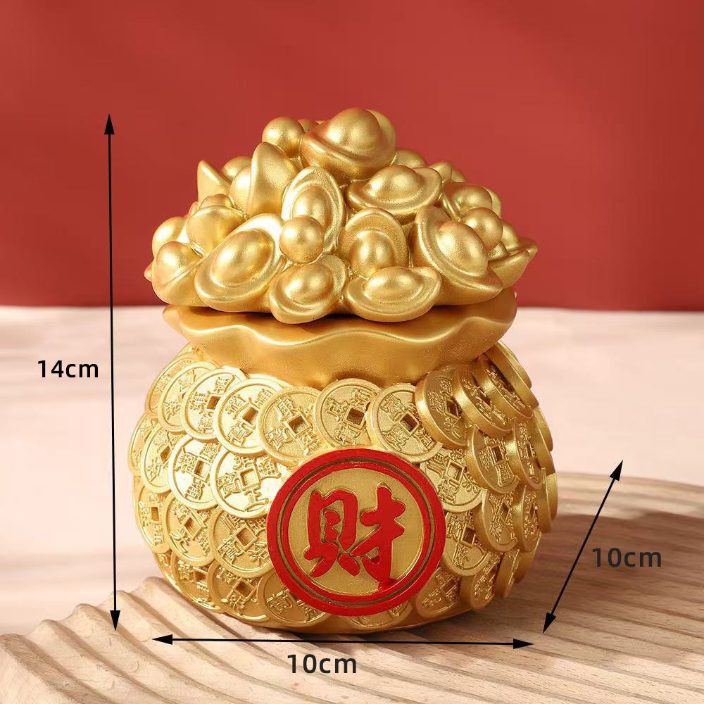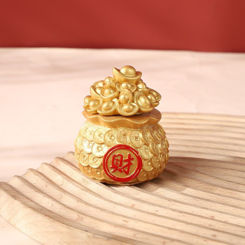 행운과 보물을 끌어들이는 자동차 수지 공예품 돈 가방 새해 집 거실 데스크탑 장식 금괴 복주머니 장식품