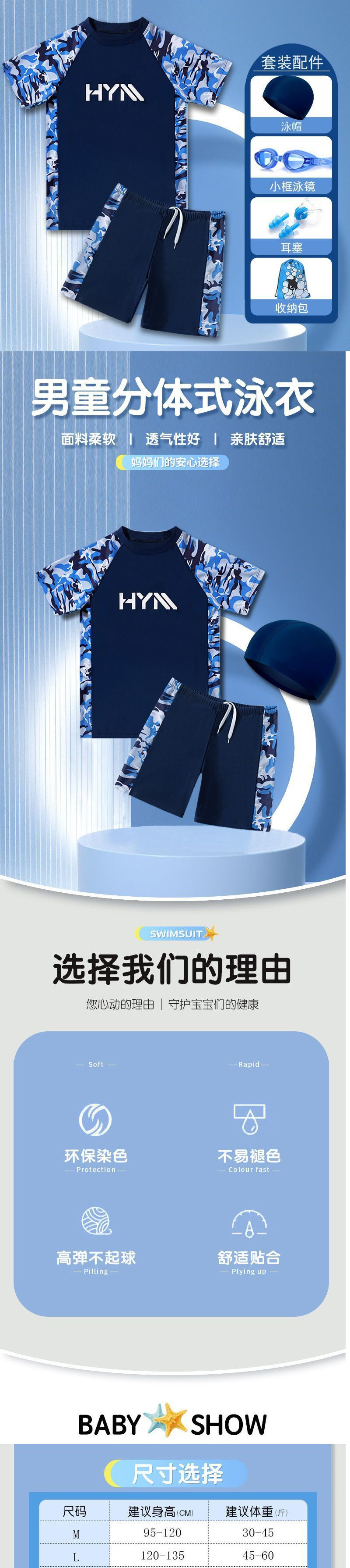 남아용 수영복, 청소년용 수영복, 15~18세, 스플릿, 중대형 아동용 수영 장비, 수영모 및 수영 고글 세트