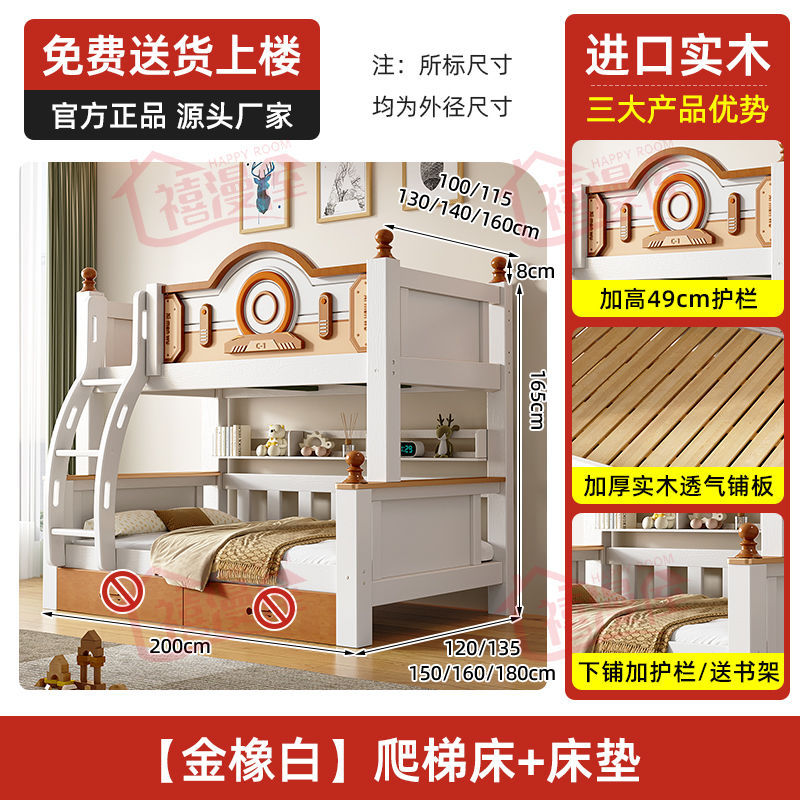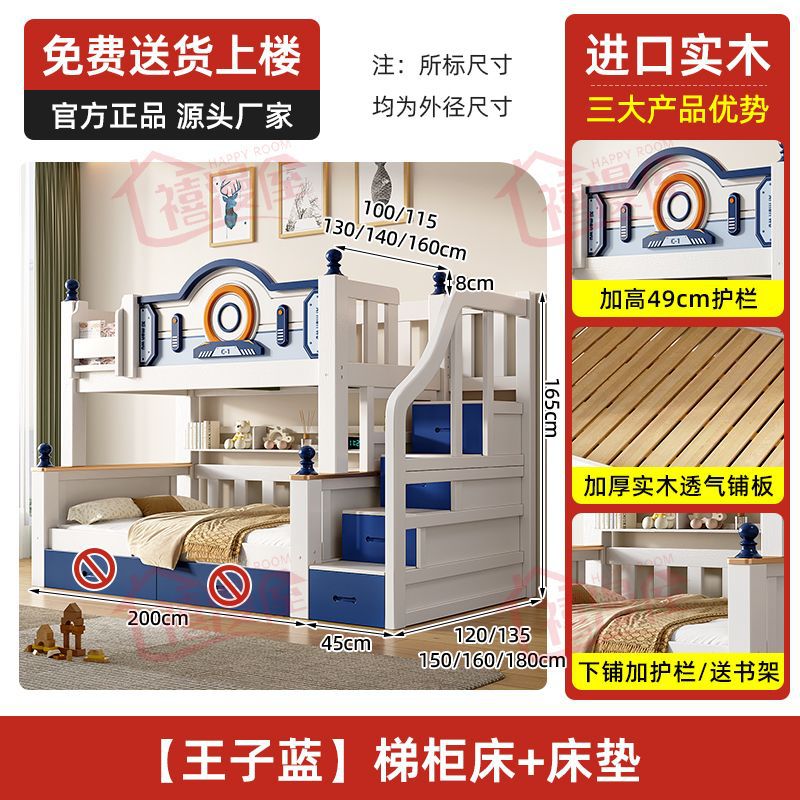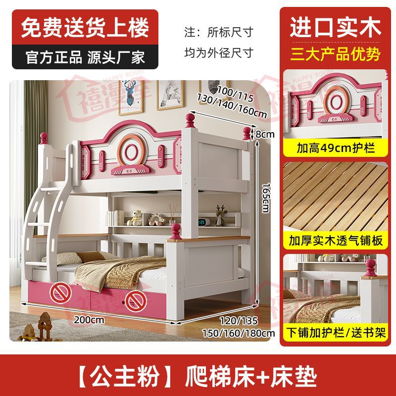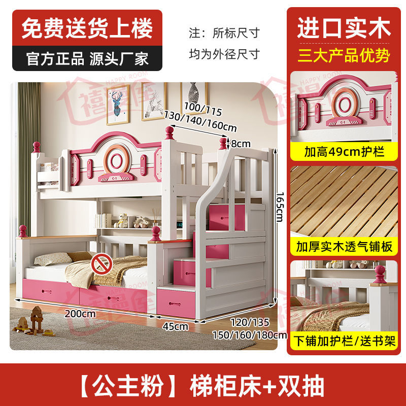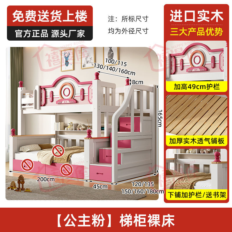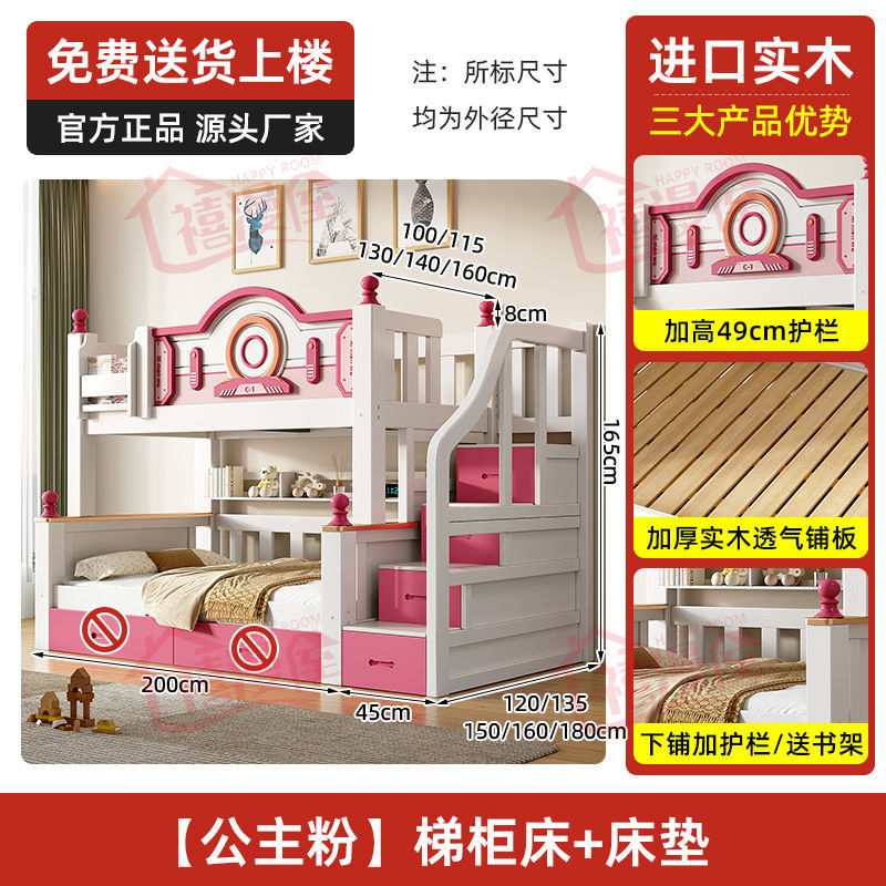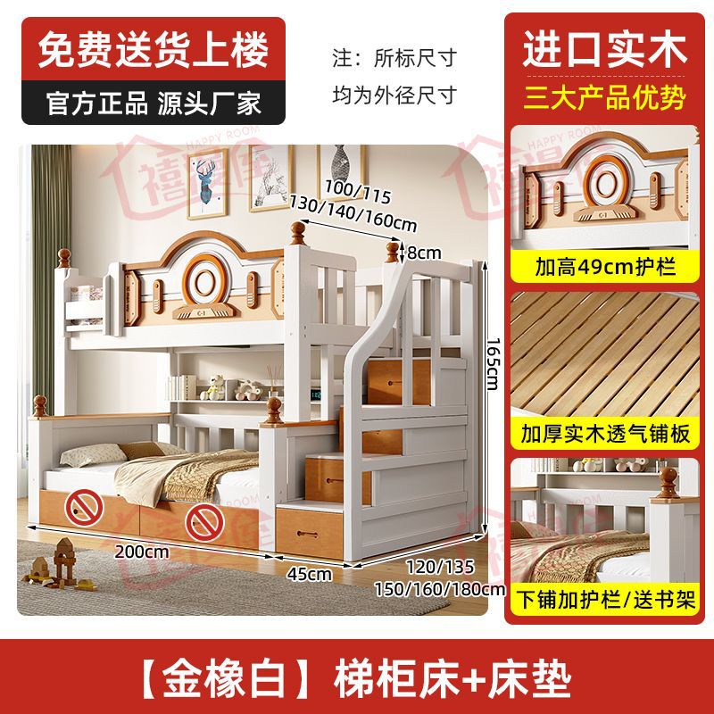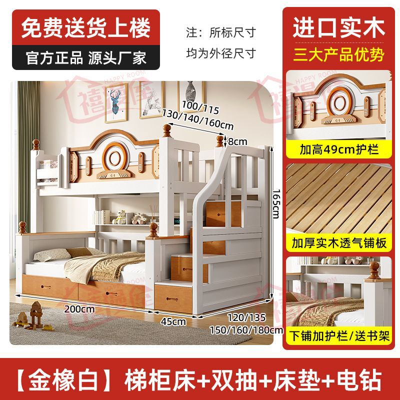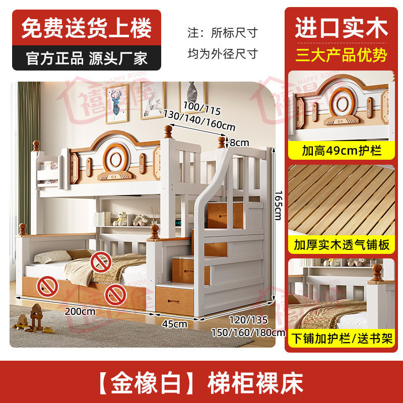 원목 2층침대, 원목 2층침대, 소형 하이앤로우 침대, 어린이침대, 두꺼운 이층침대