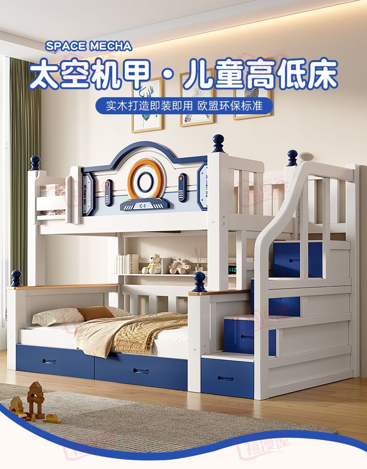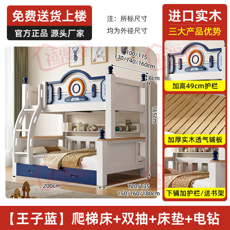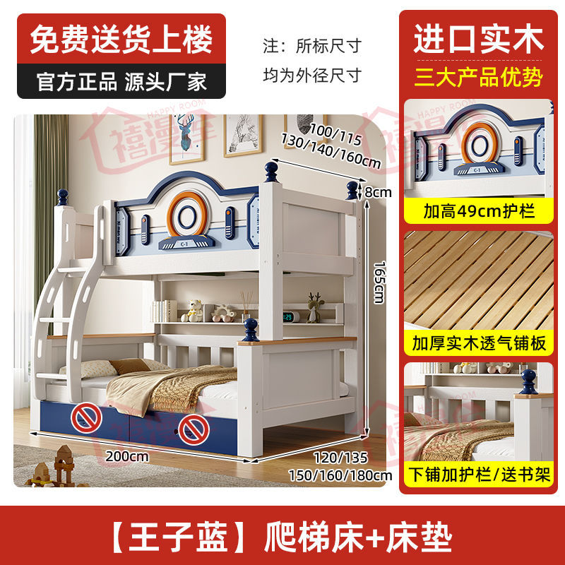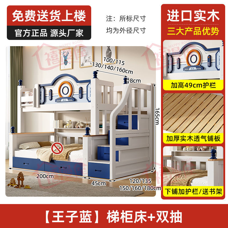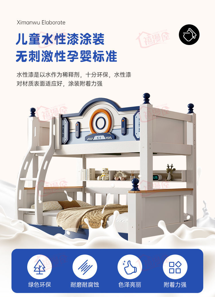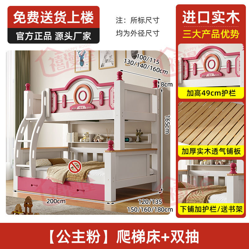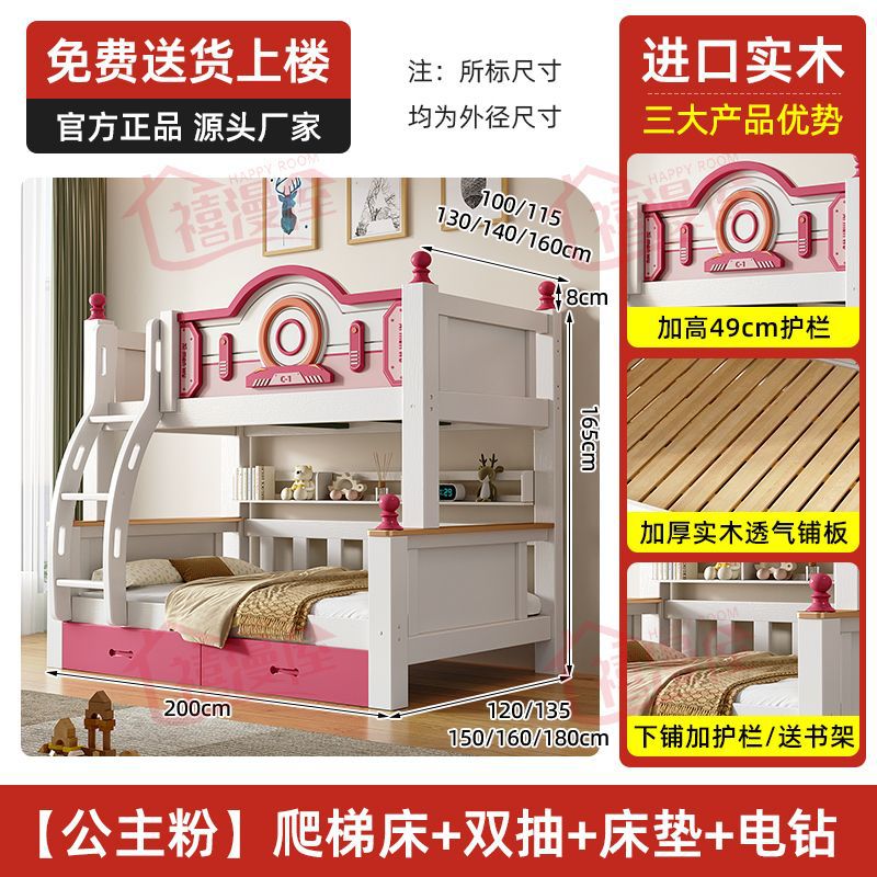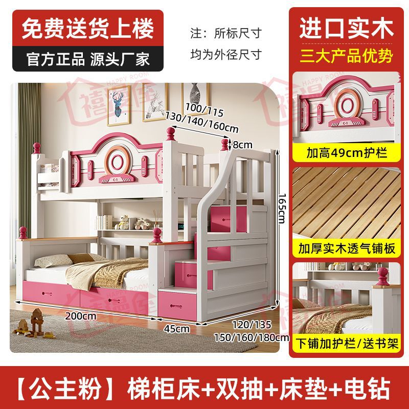 원목 2층침대, 원목 2층침대, 소형 하이앤로우 침대, 어린이침대, 두꺼운 이층침대