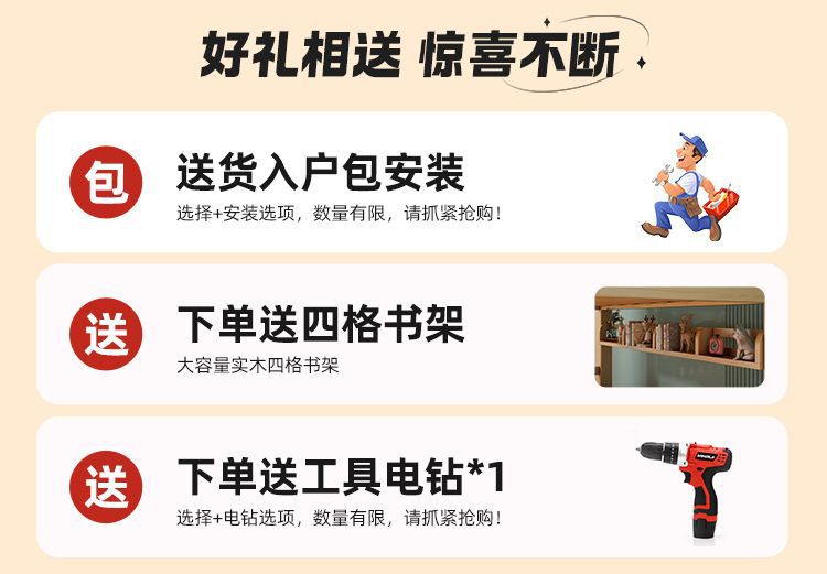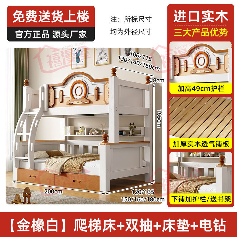 • 골든오크 화이트 사다리 캐비닛 + 책장 + 더블 서랍 + 매트리스 + 전기 드릴