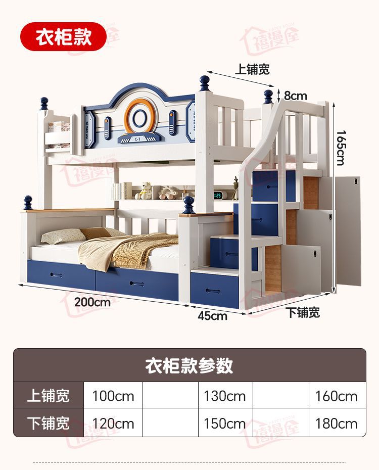 • 상부 침대 폭 160cm, 하부 침대 폭 180cm
