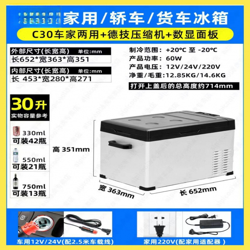 자동차 냉장고 12v24v220v 자동차 홈 이중 목적 압축기 냉동 트럭 자동차 야외 범용 냉장고스토어 가기