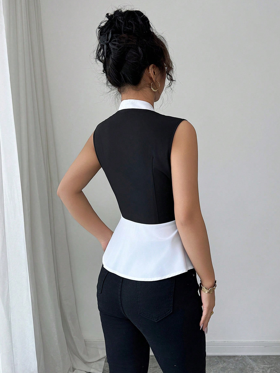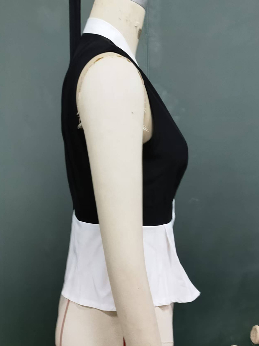 국경 간 윙크 아마존 대외 무역 민소매 셔츠 2025 여름 유럽과 미국의 통근 가짜 투피스 카디건 셔츠 여성스토어 가기