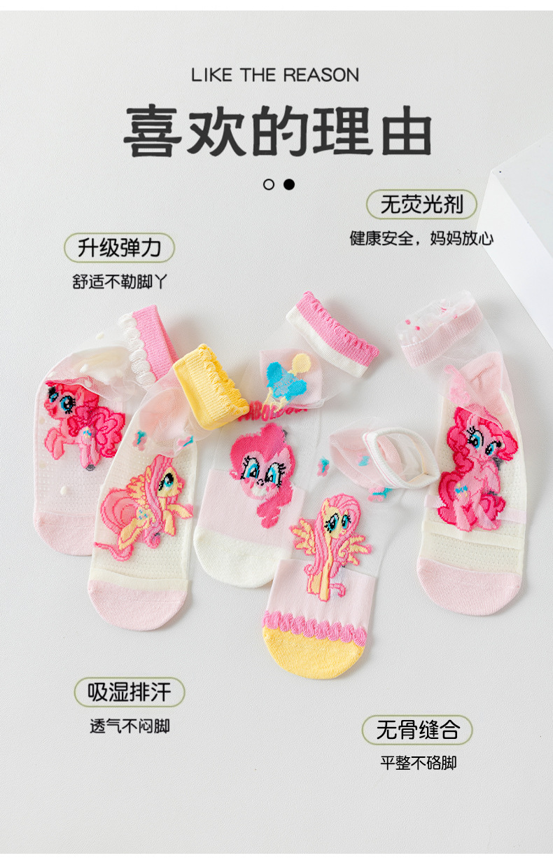 Cass Mesh 어린이 양말 여름 얇은 면 바닥 짧은 양말 귀여운 만화 포니 폴리 시리즈 소녀 양말스토어 가기